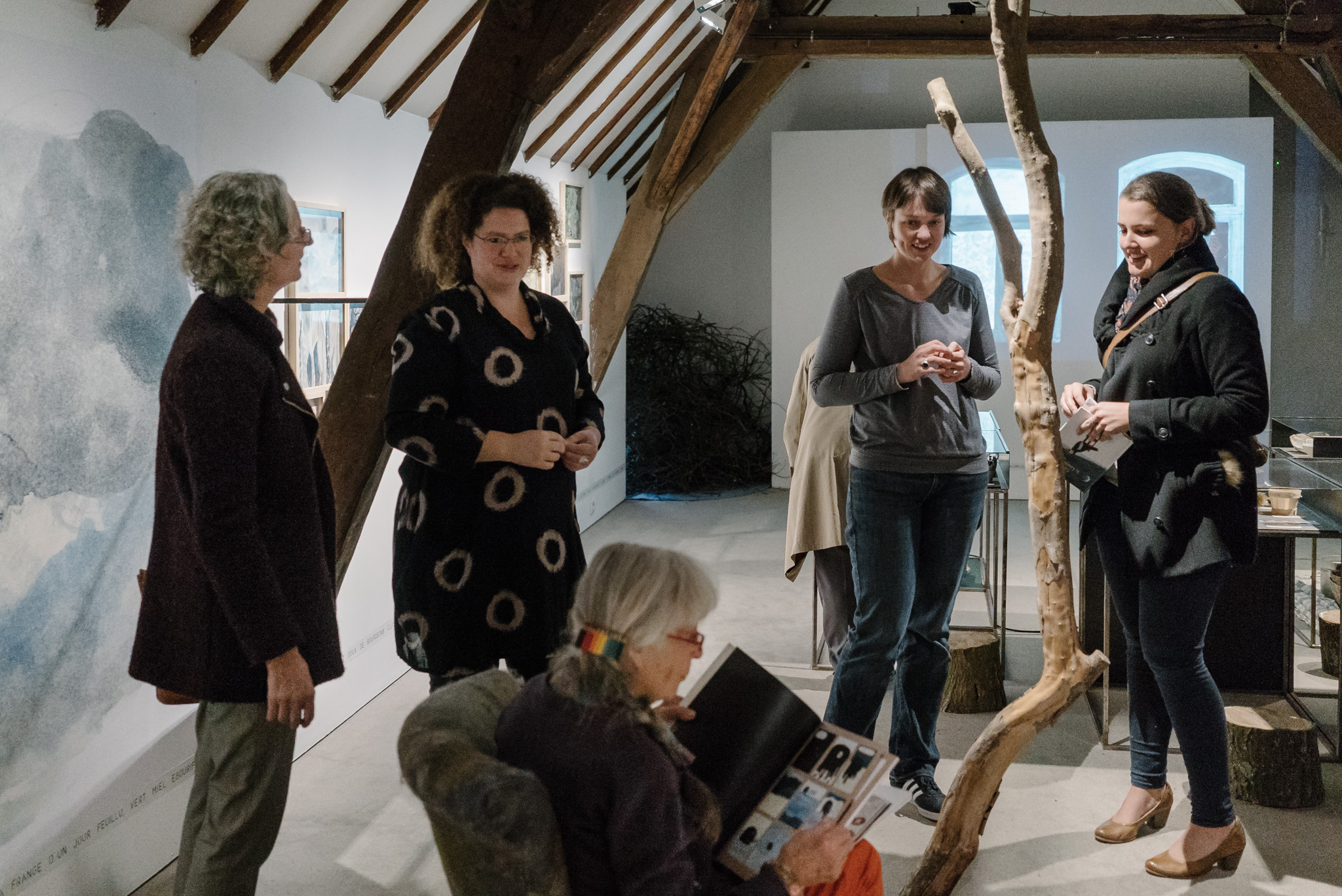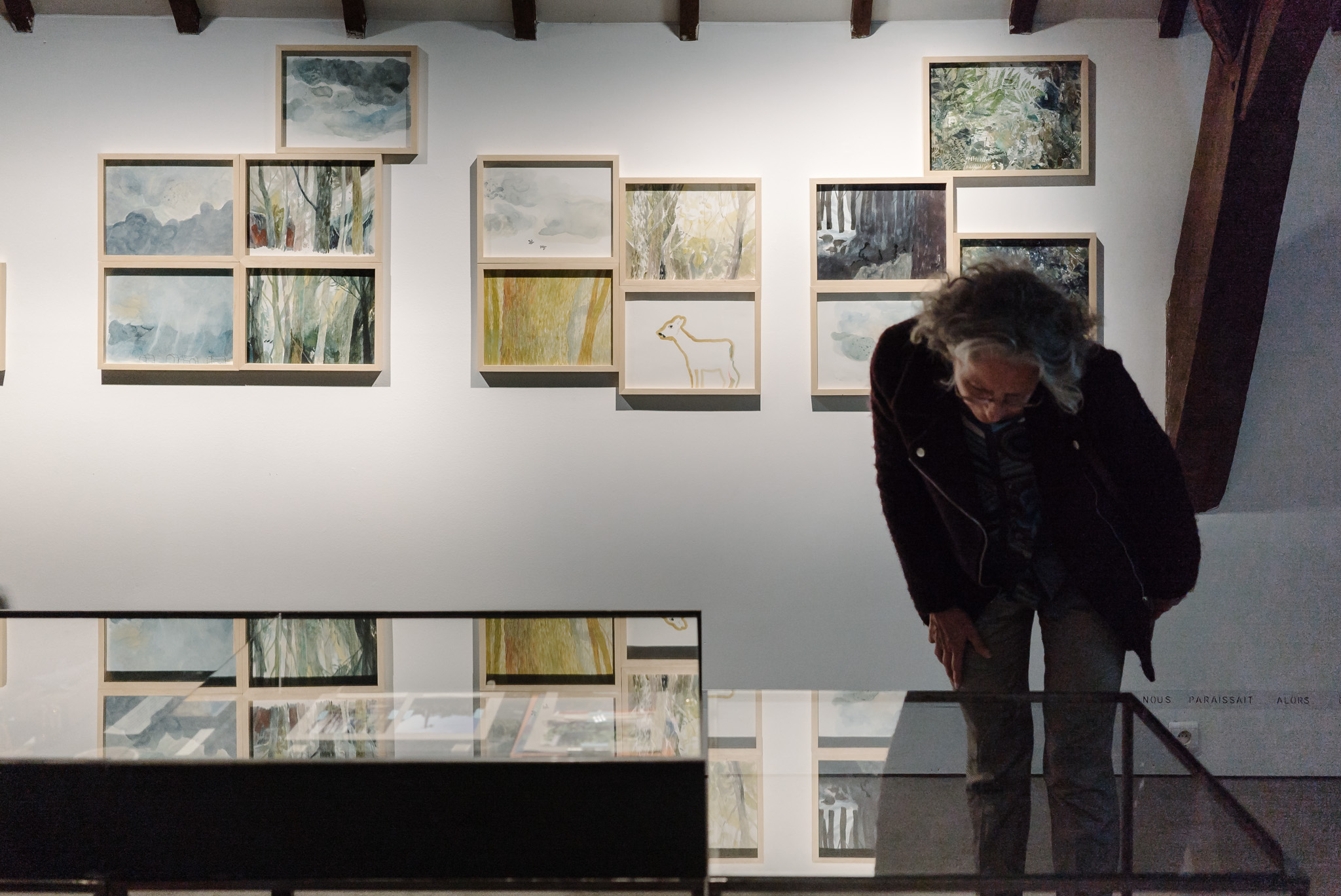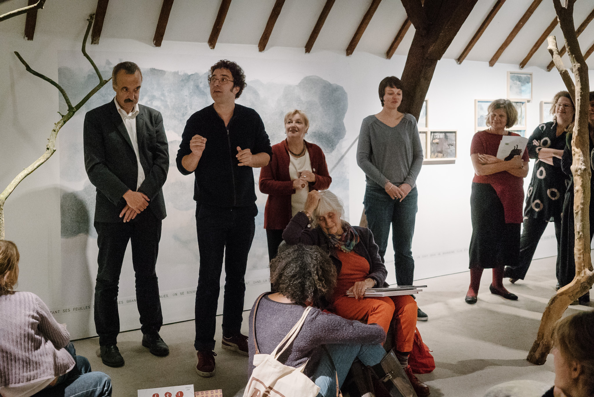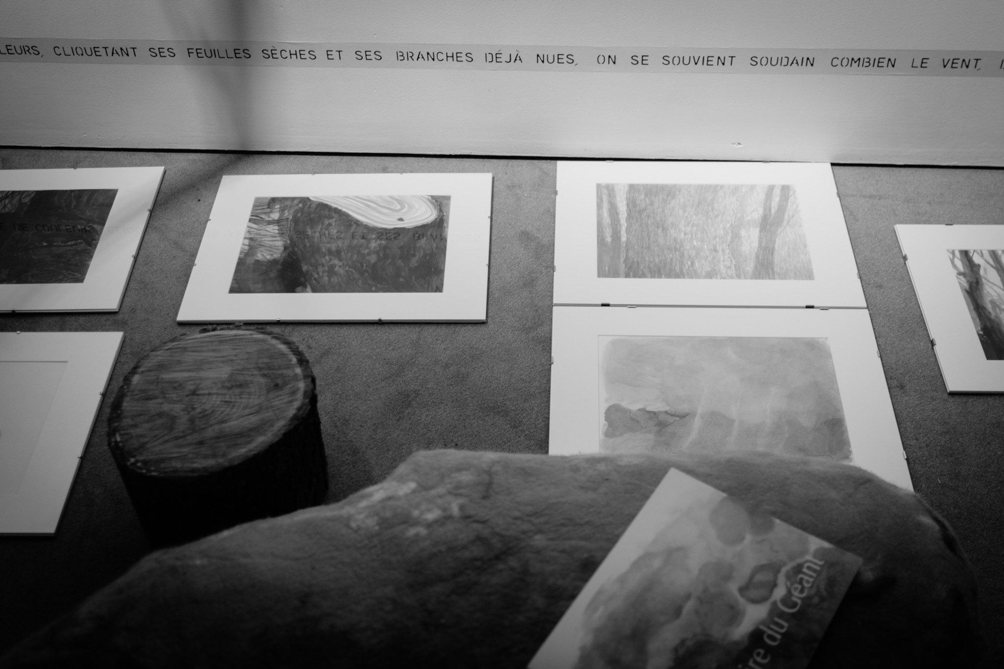 La forêt fera un bruit de mer, dans ses branches, sous les poutres dans la salle des expositions de la Vénerie. Anne Herbauts glane en lisière de ville des échos de marées, miettes, images et objets hétéroclites quotidiens ou lointains qu’elle rend précieux ou particuliers, traces inventées des marées sur Boitsfort. Ce seront de possibles histoires en branches, en brassées, à glaner à son tour par le visiteur.