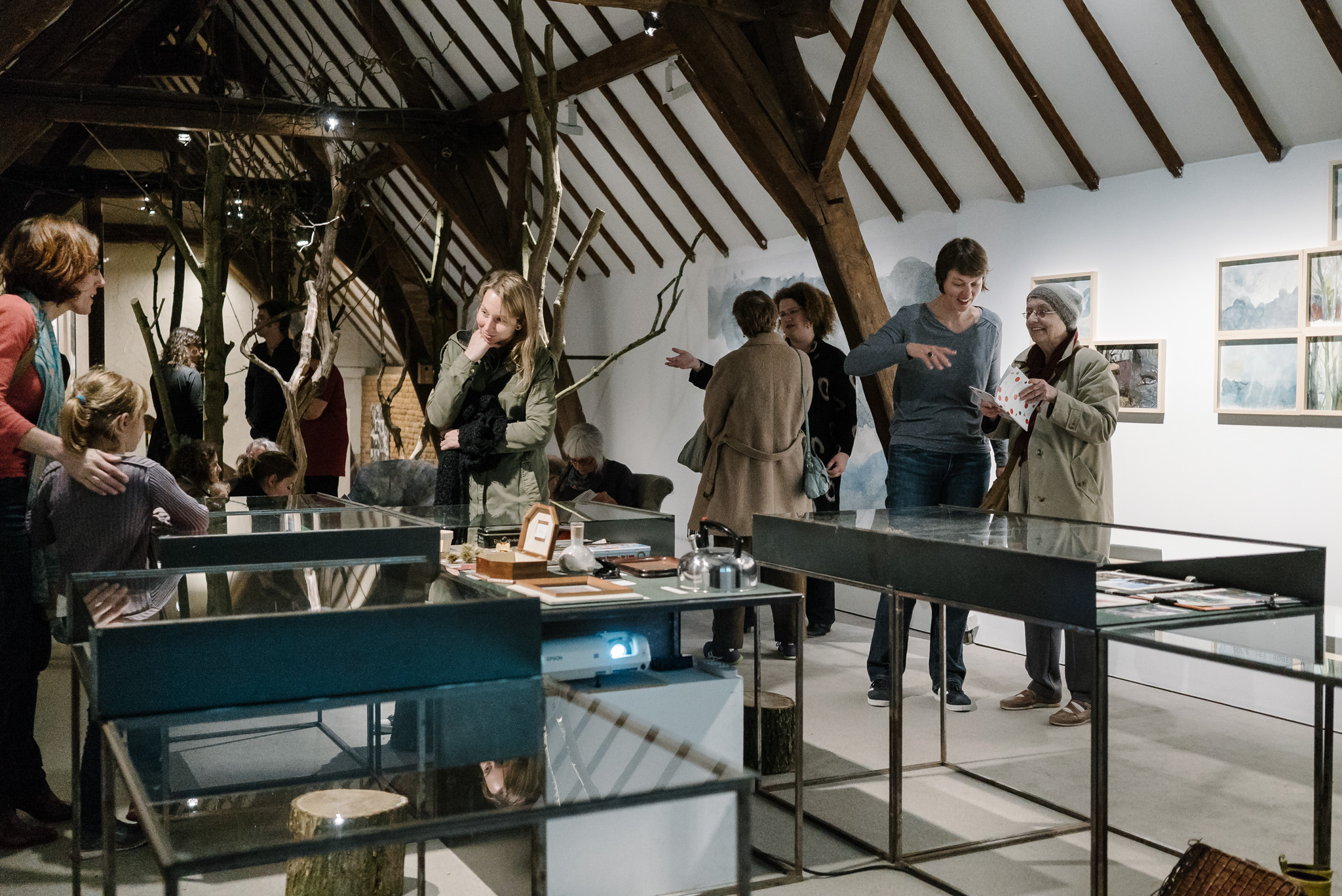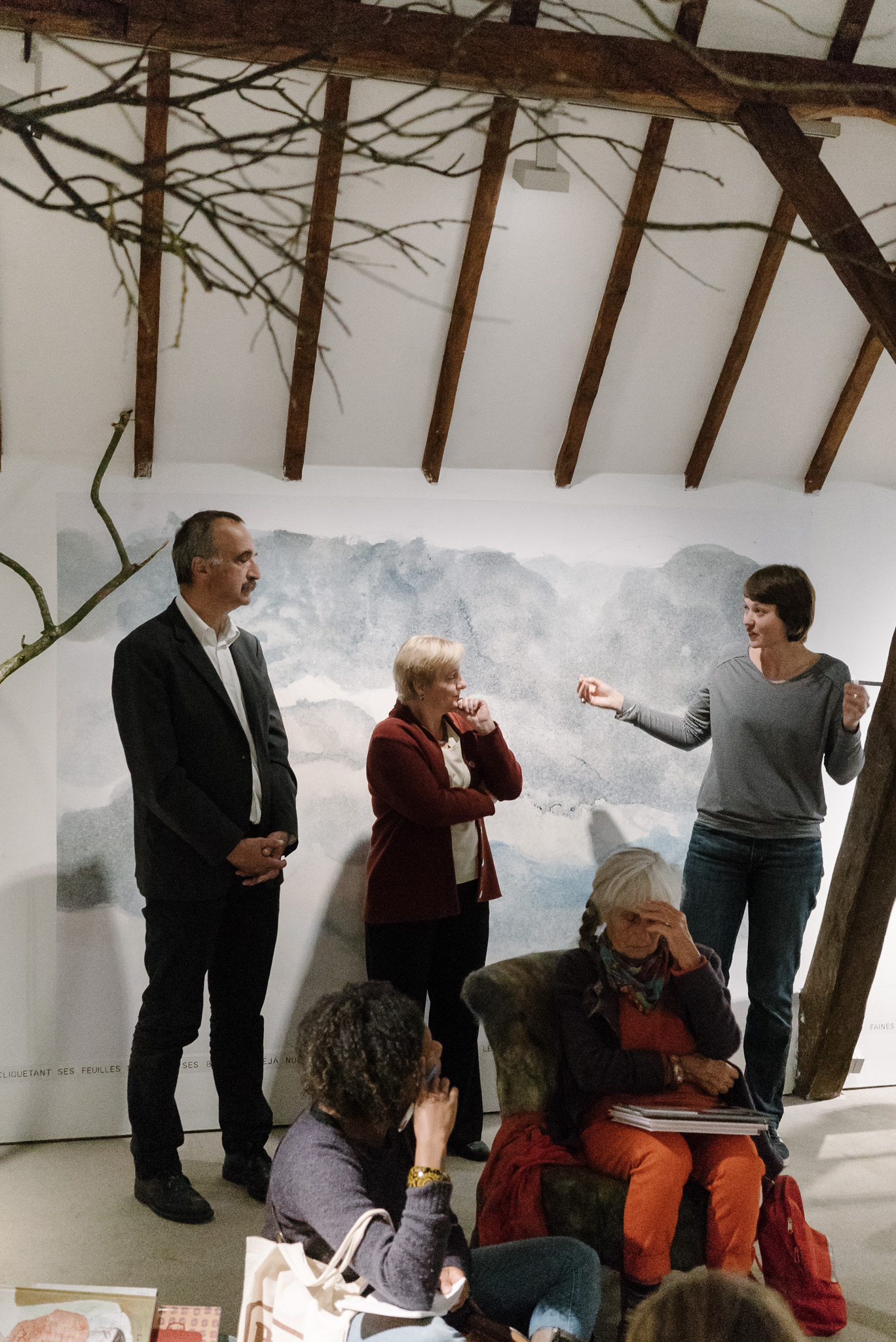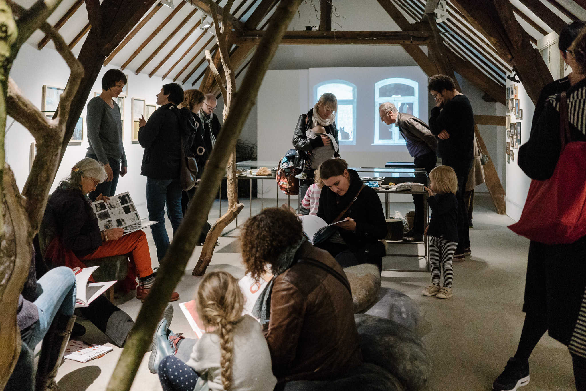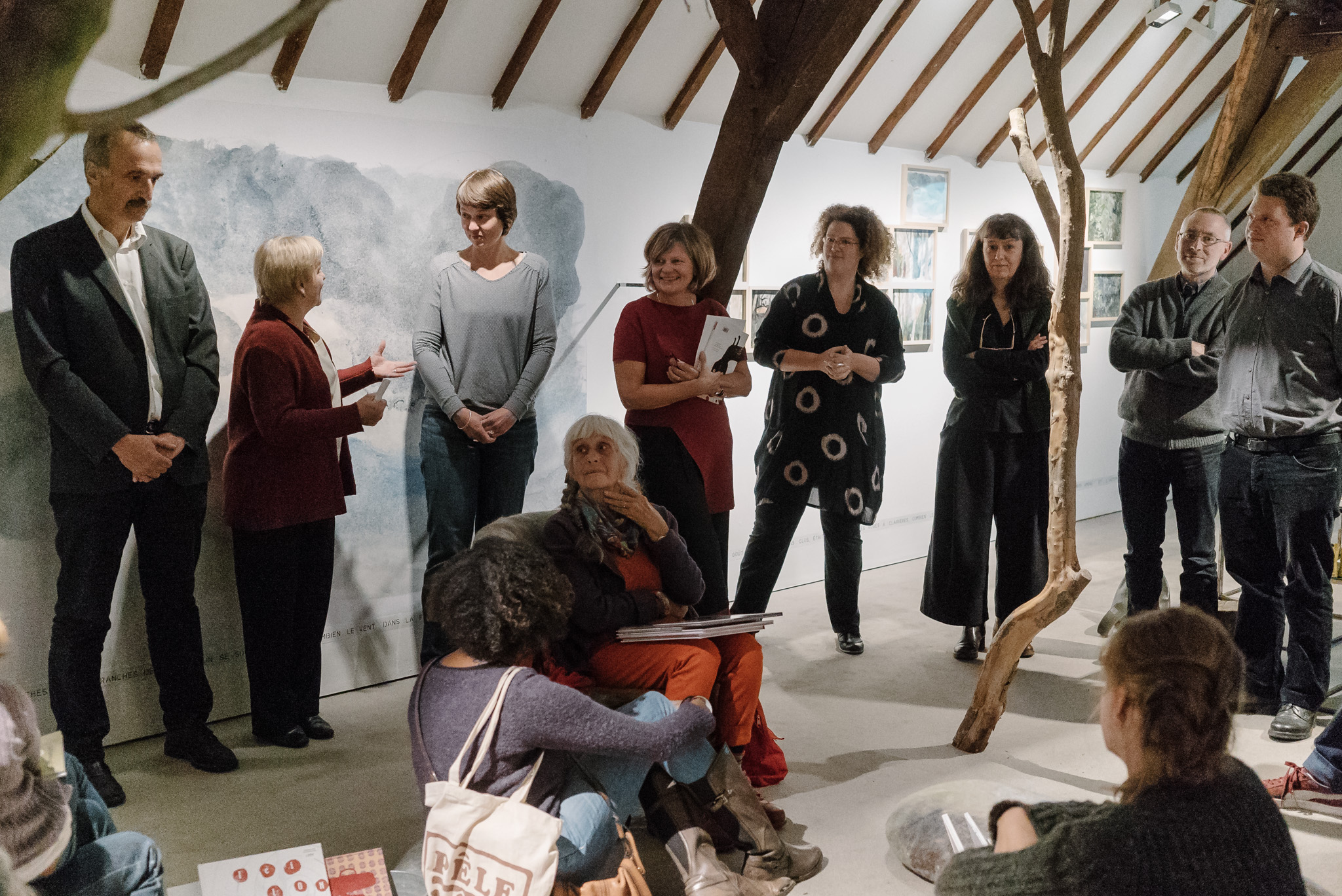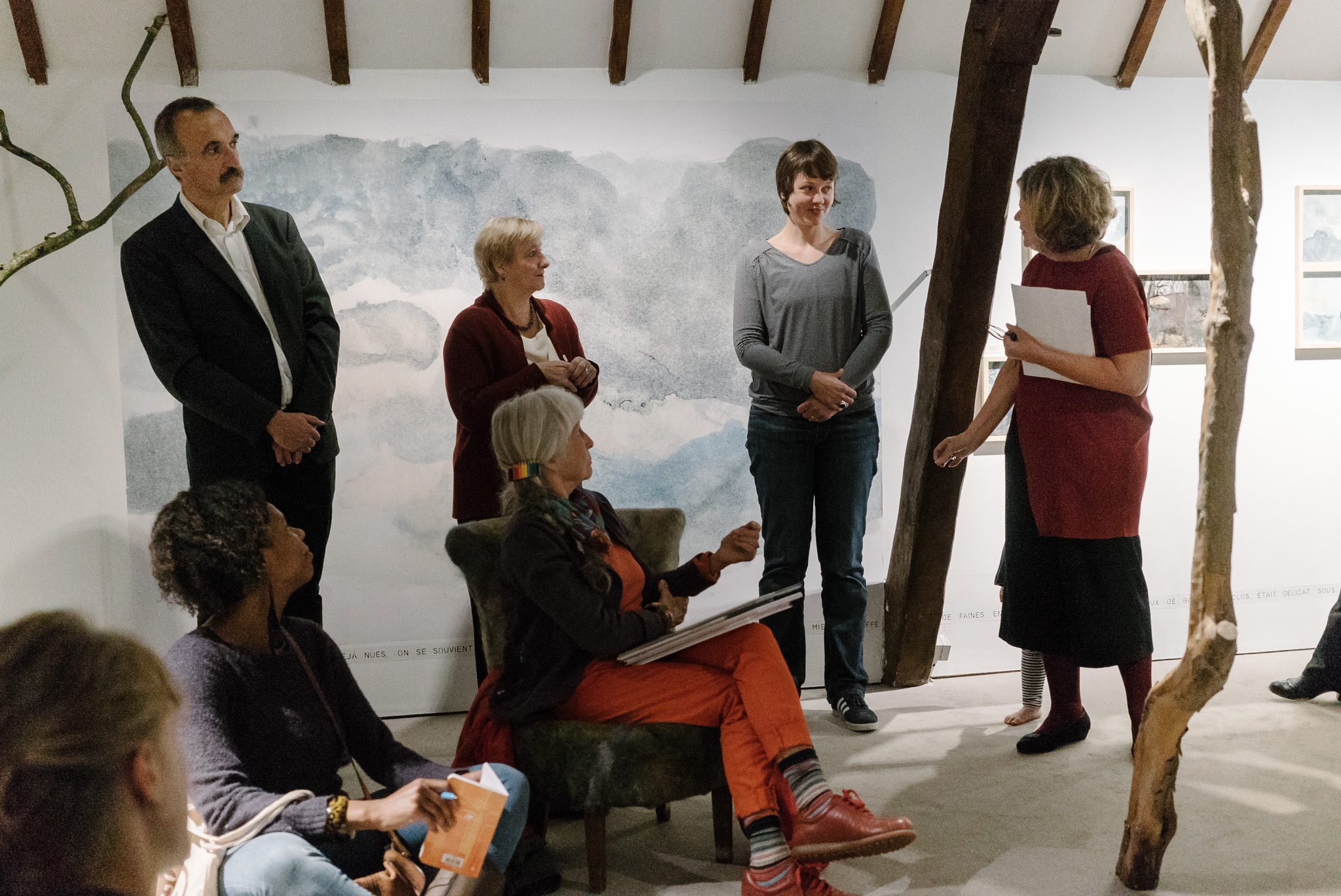 La forêt fera un bruit de mer, dans ses branches, sous les poutres dans la salle des expositions de la Vénerie. Anne Herbauts glane en lisière de ville des échos de marées, miettes, images et objets hétéroclites quotidiens ou lointains qu’elle rend précieux ou particuliers, traces inventées des marées sur Boitsfort. Ce seront de possibles histoires en branches, en brassées, à glaner à son tour par le visiteur.