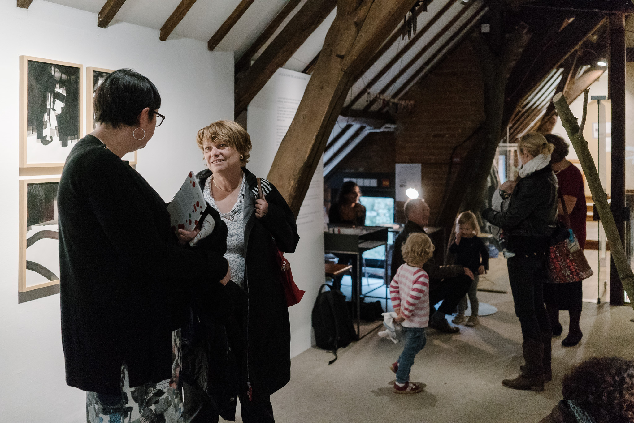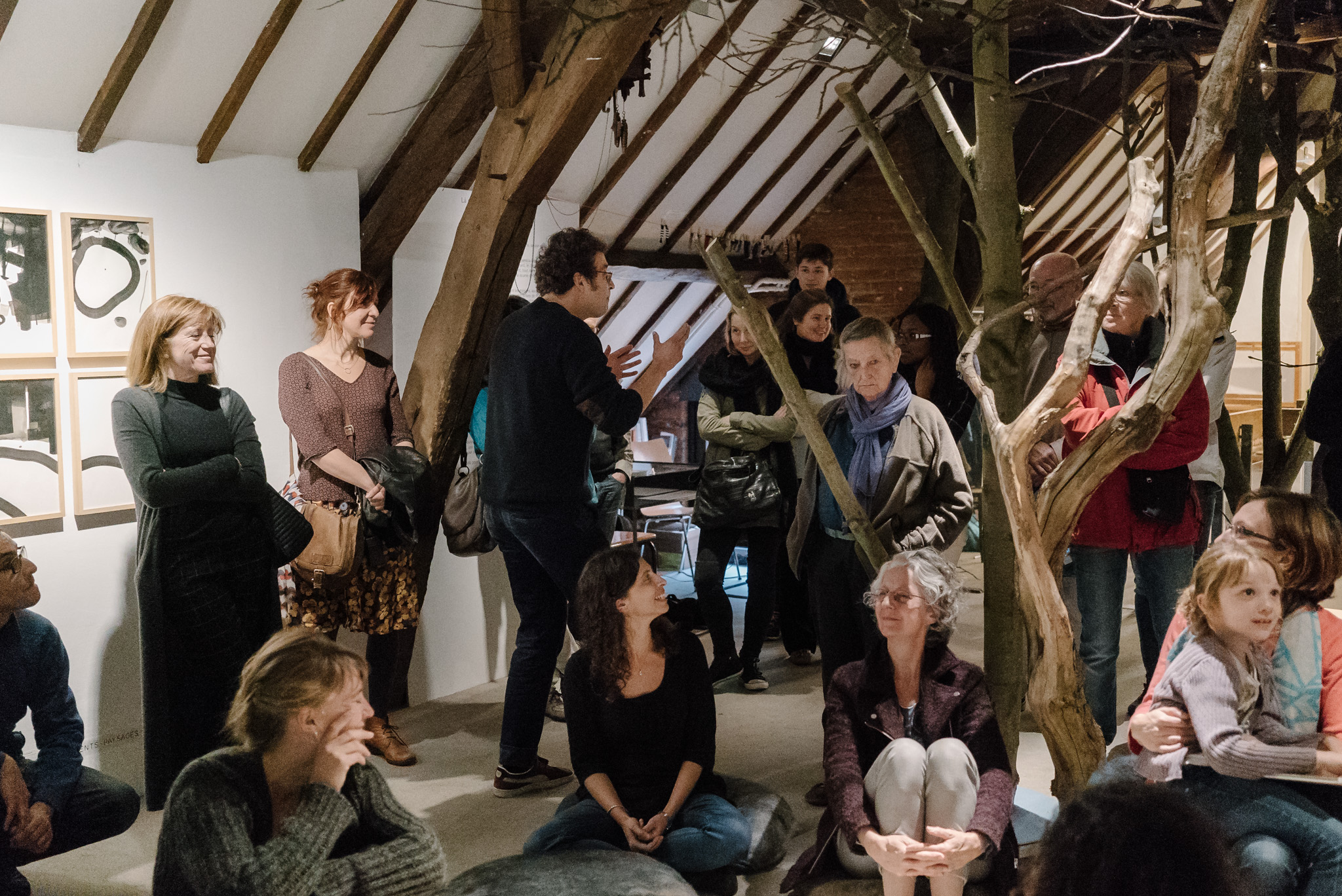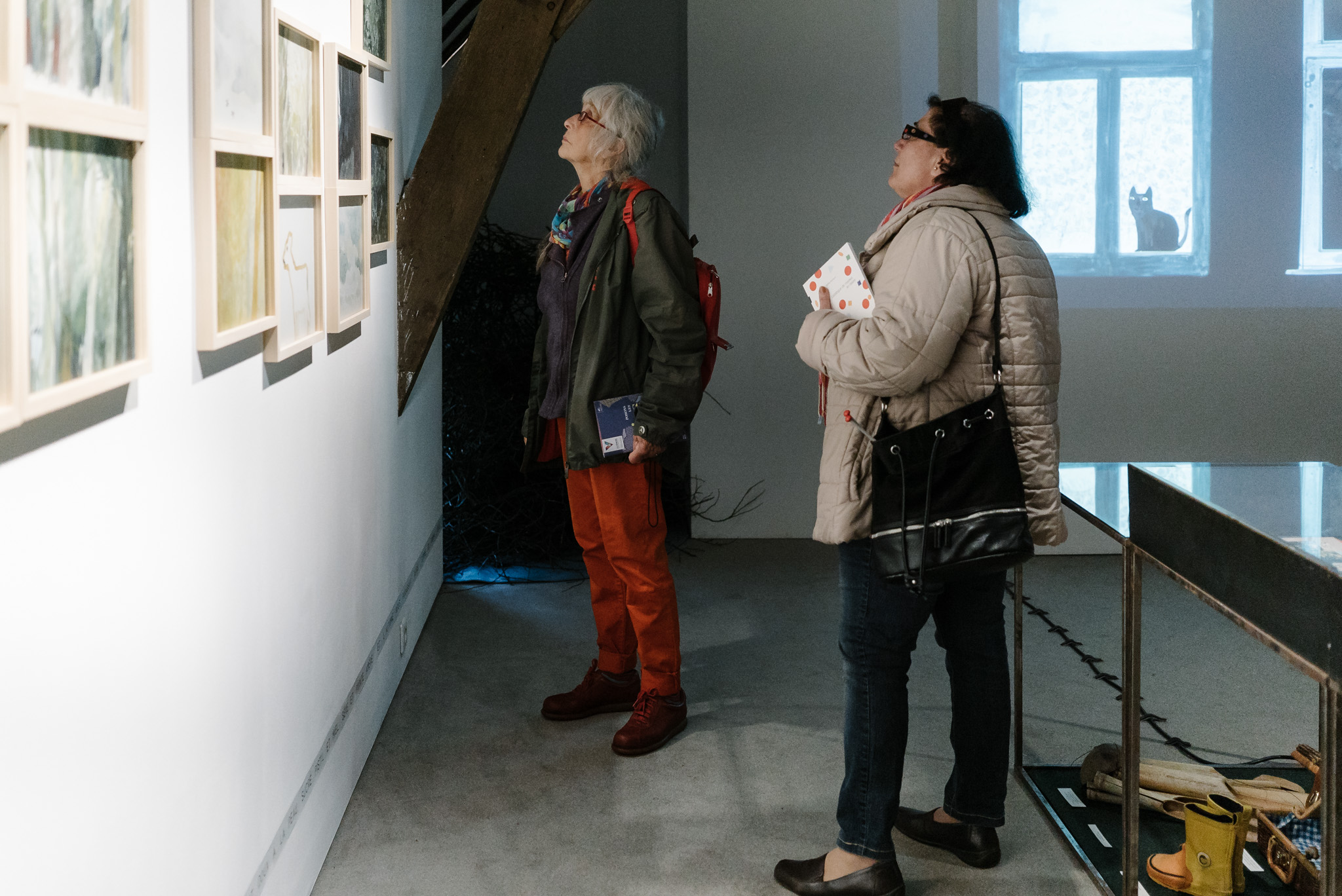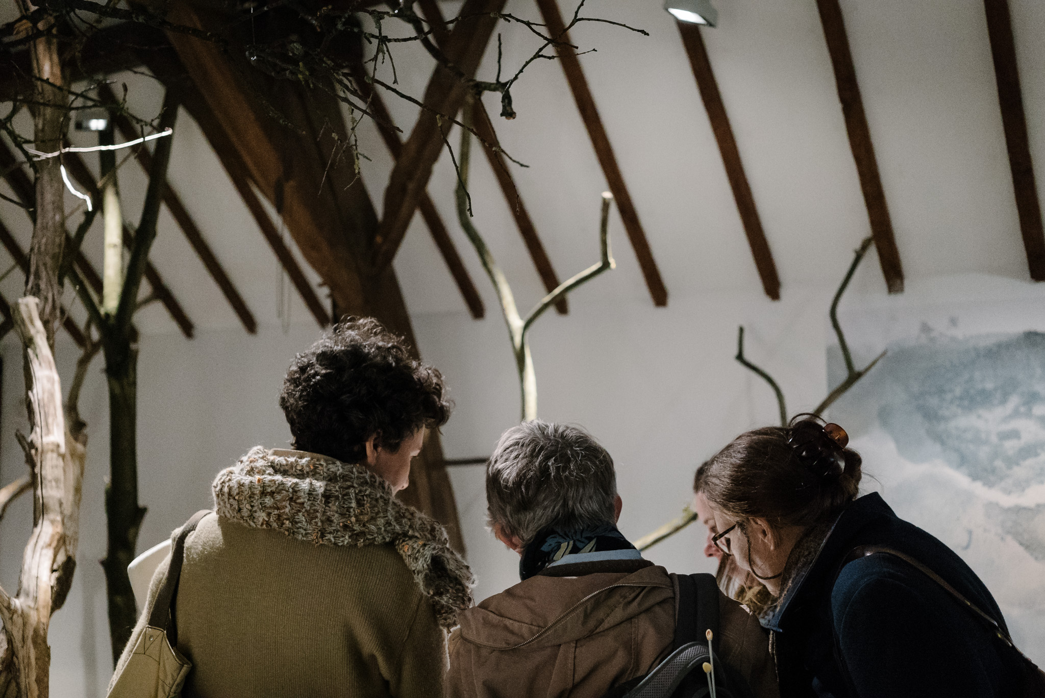 La forêt fera un bruit de mer, dans ses branches, sous les poutres dans la salle des expositions de la Vénerie. Anne Herbauts glane en lisière de ville des échos de marées, miettes, images et objets hétéroclites quotidiens ou lointains qu’elle rend précieux ou particuliers, traces inventées des marées sur Boitsfort. Ce seront de possibles histoires en branches, en brassées, à glaner à son tour par le visiteur.