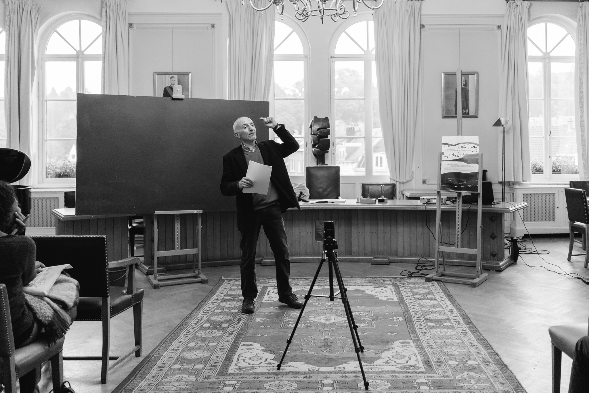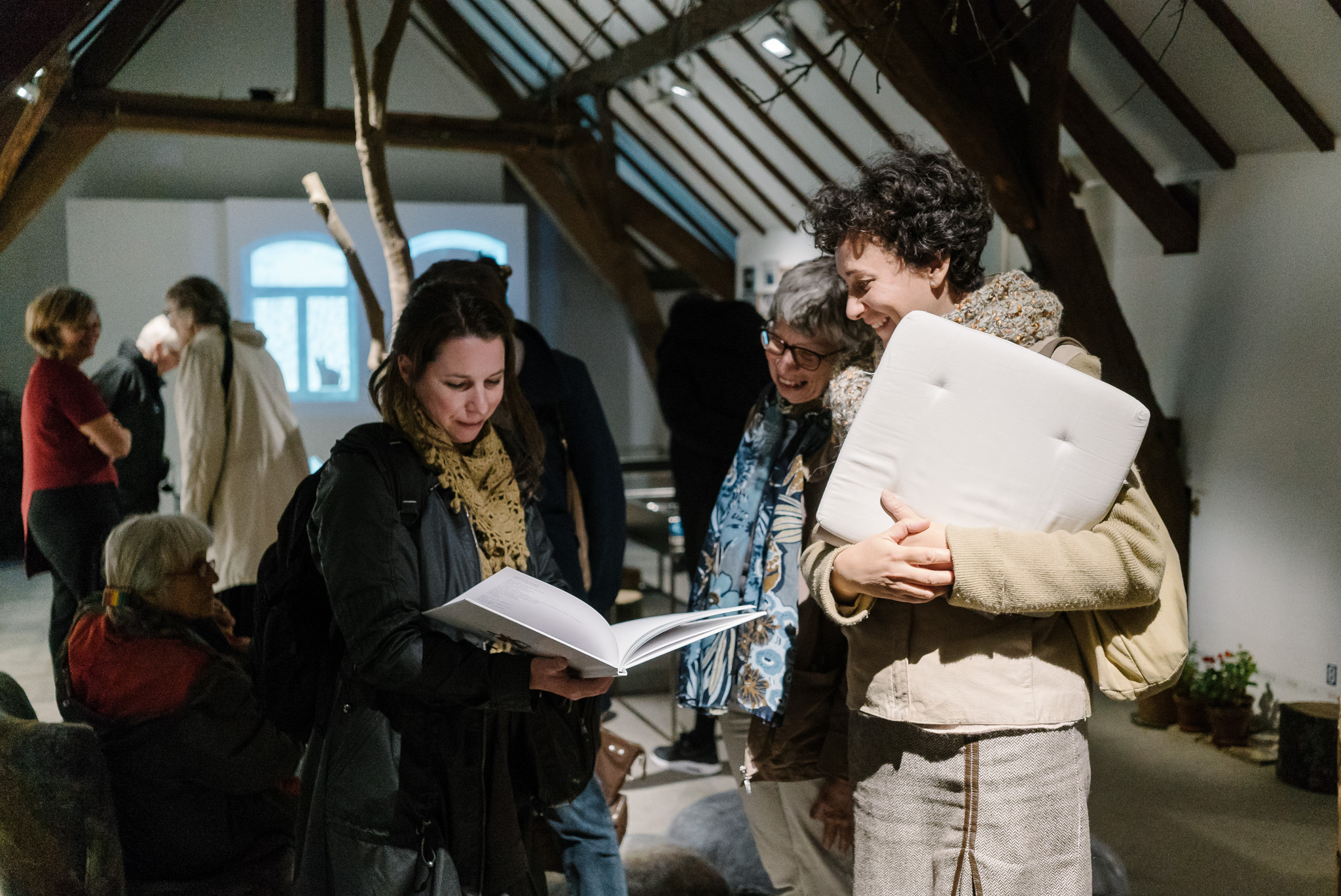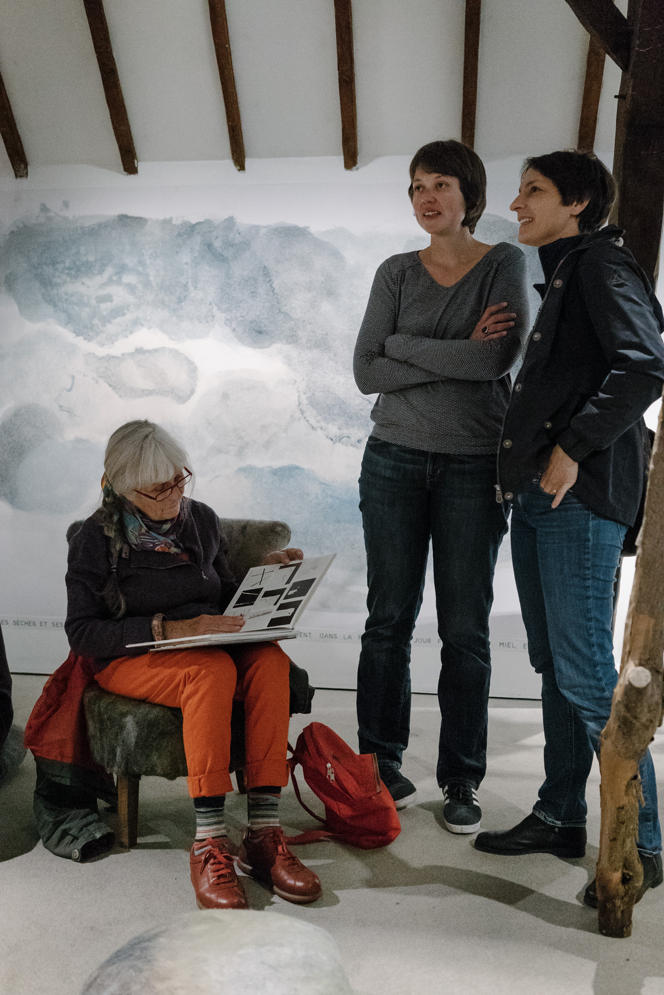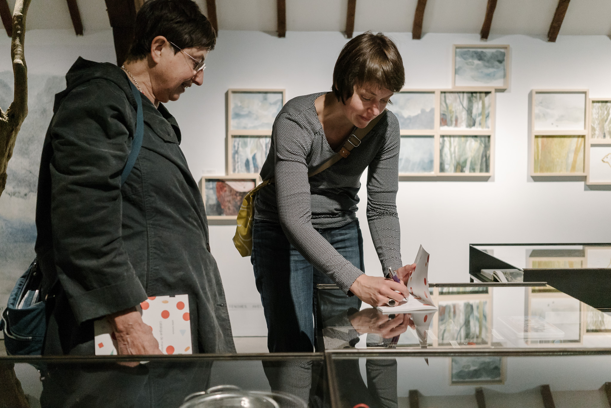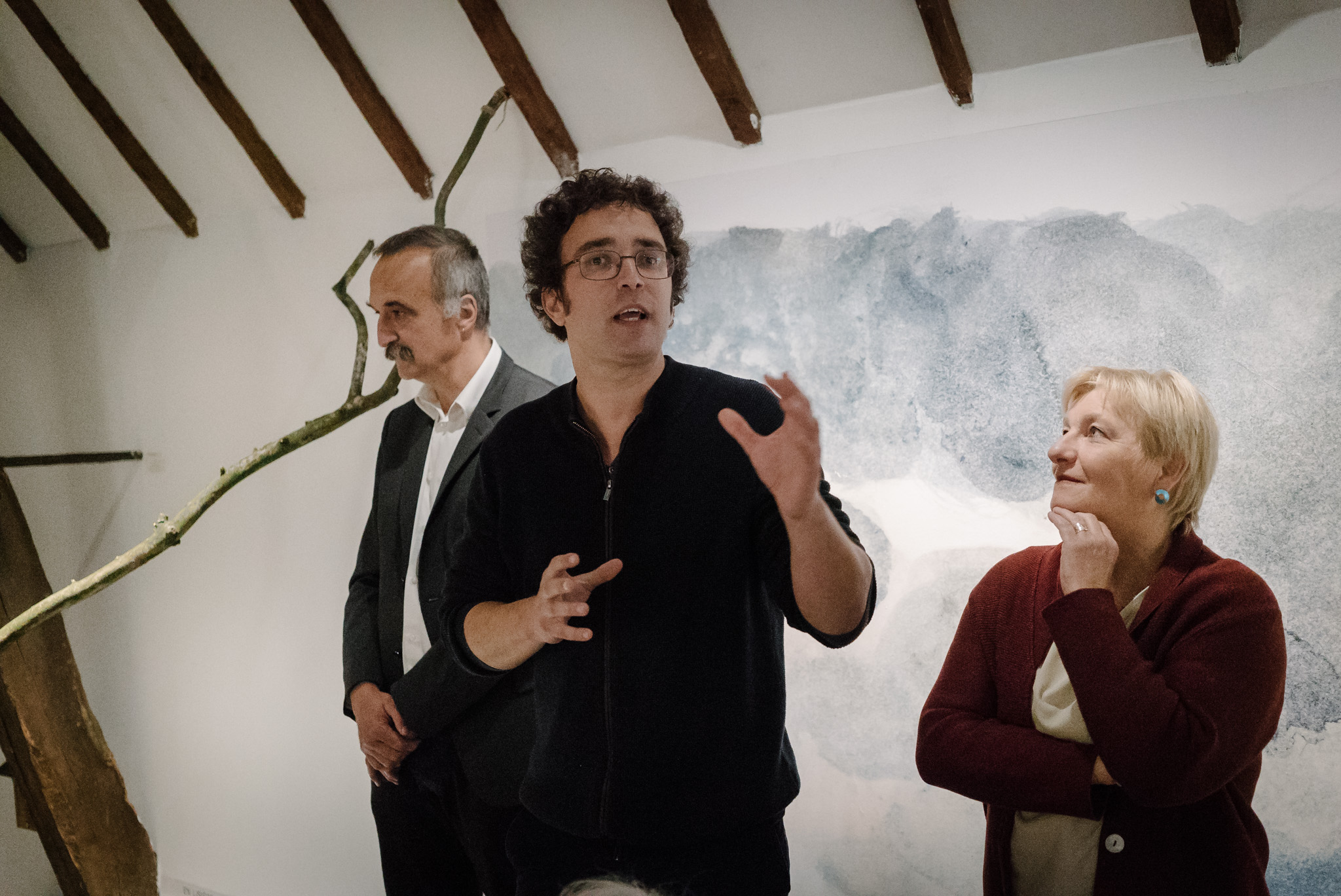 La forêt fera un bruit de mer, dans ses branches, sous les poutres dans la salle des expositions de la Vénerie. Anne Herbauts glane en lisière de ville des échos de marées, miettes, images et objets hétéroclites quotidiens ou lointains qu’elle rend précieux ou particuliers, traces inventées des marées sur Boitsfort. Ce seront de possibles histoires en branches, en brassées, à glaner à son tour par le visiteur.