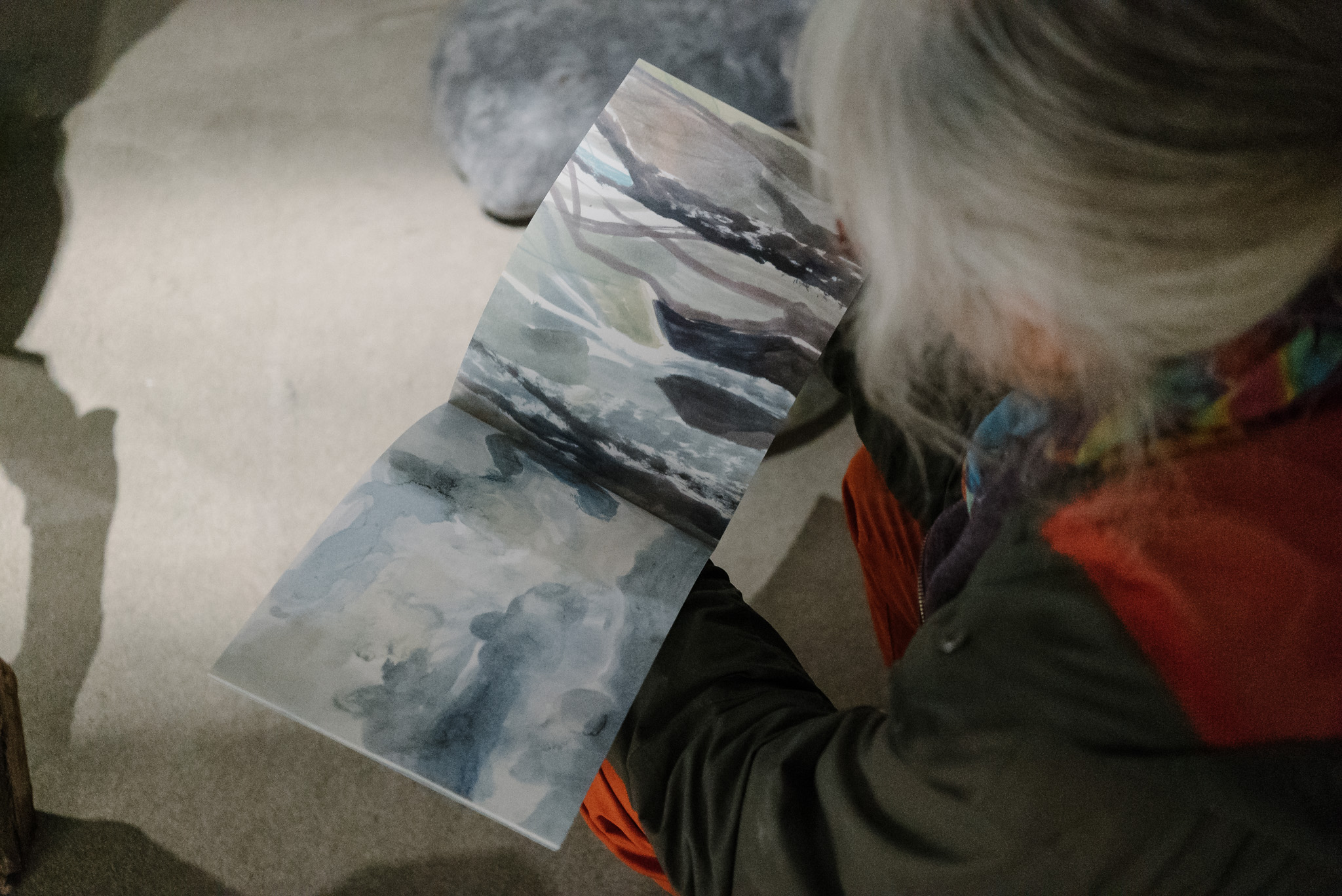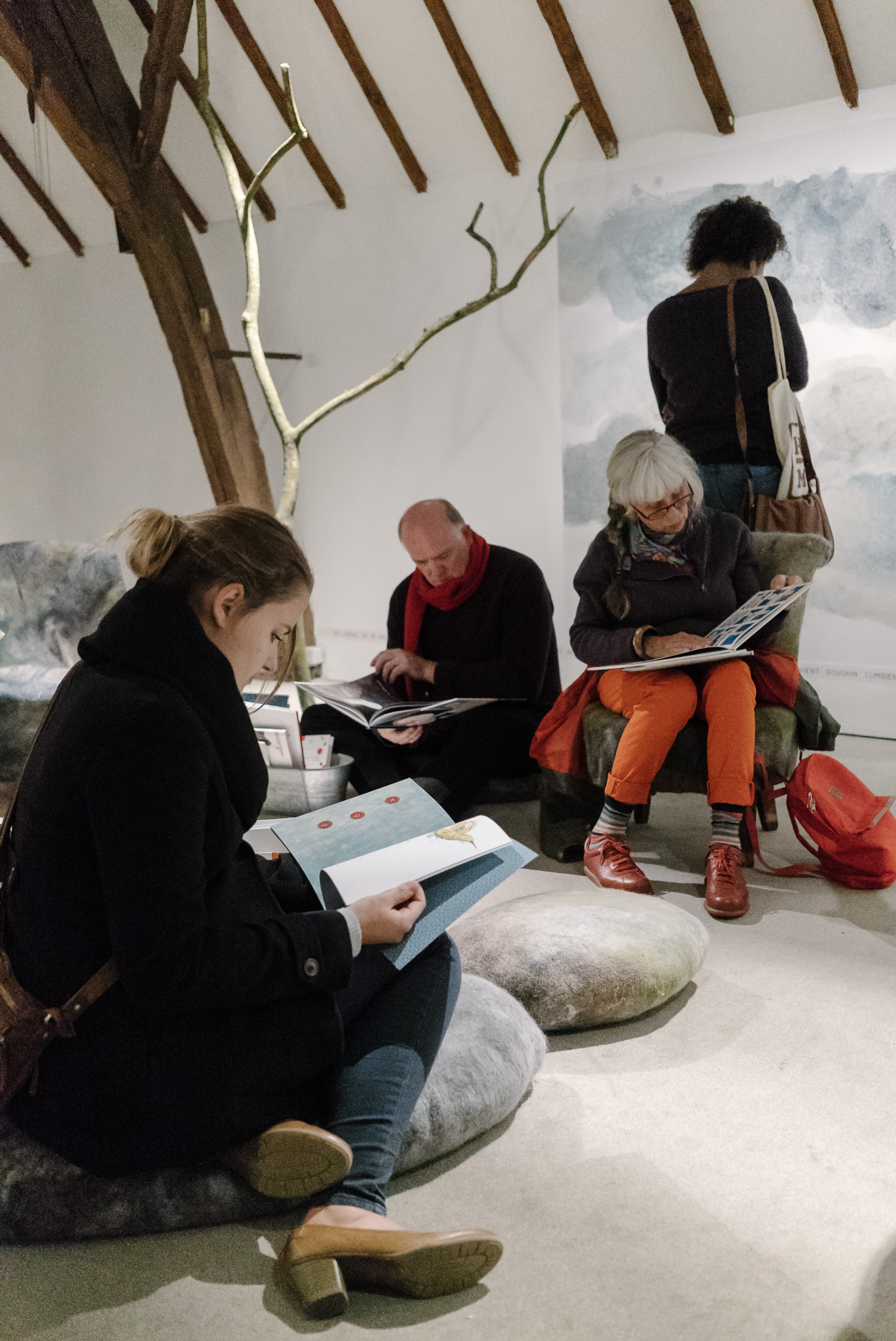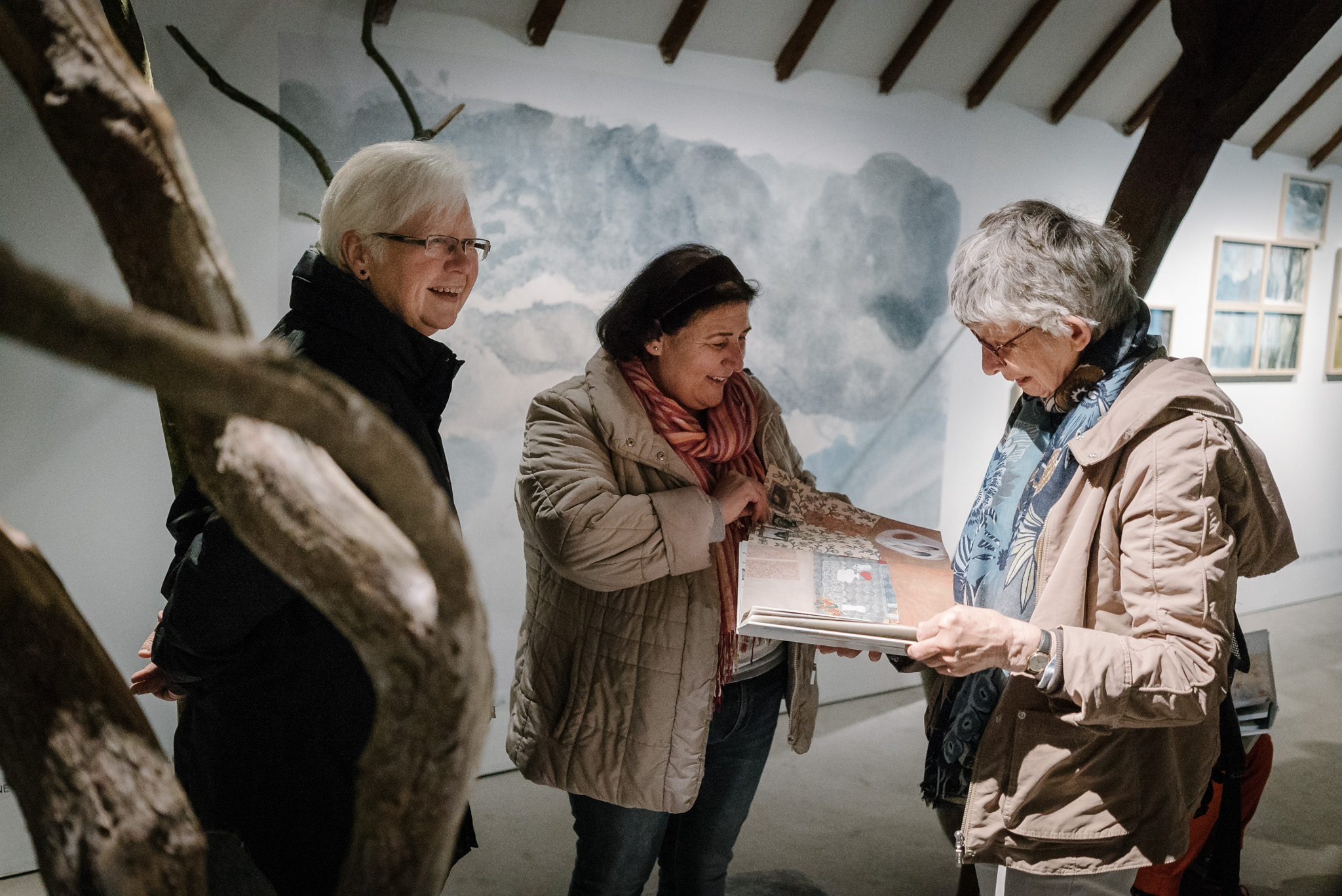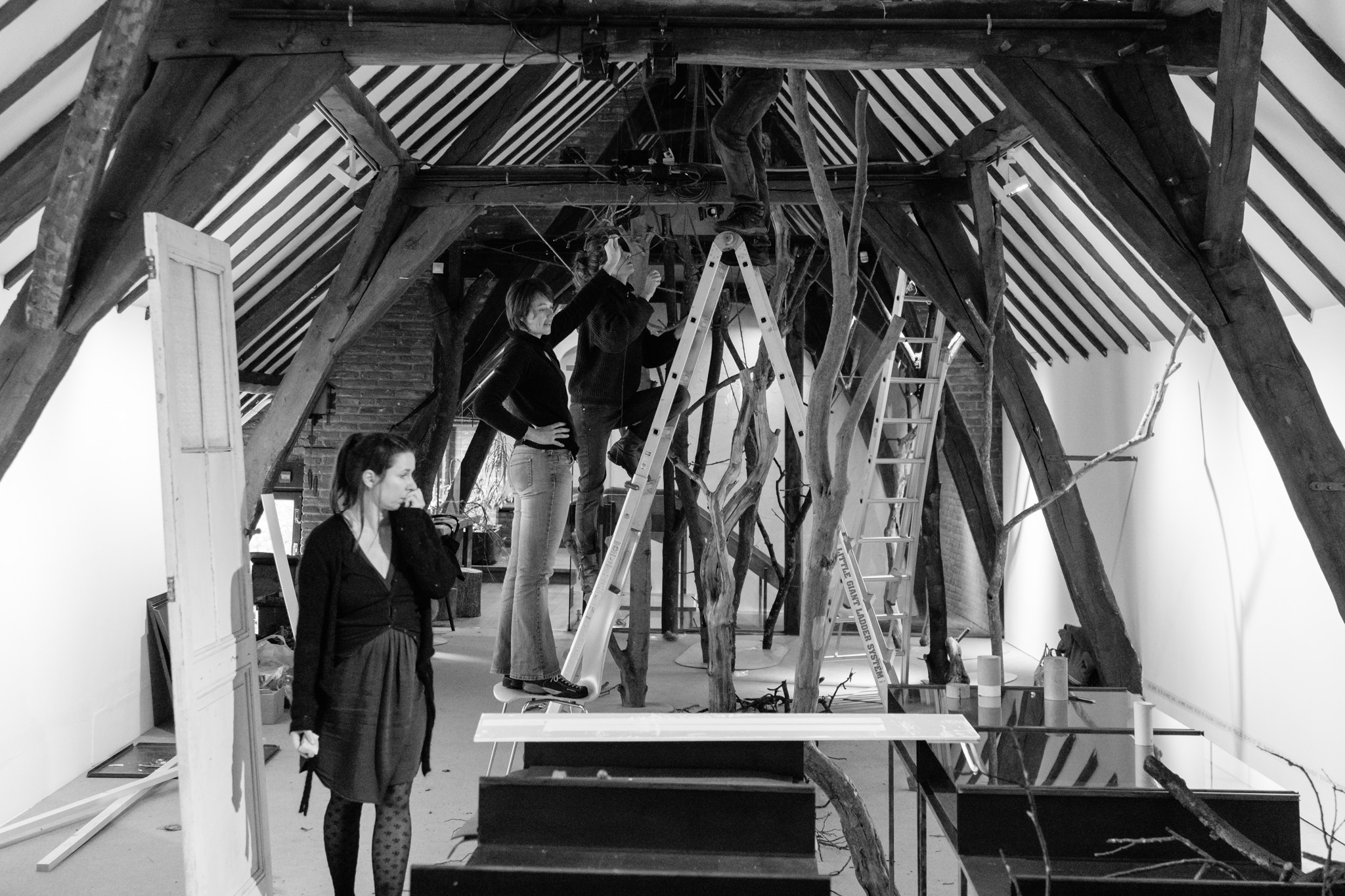 La forêt fera un bruit de mer, dans ses branches, sous les poutres dans la salle des expositions de la Vénerie. Anne Herbauts glane en lisière de ville des échos de marées, miettes, images et objets hétéroclites quotidiens ou lointains qu’elle rend précieux ou particuliers, traces inventées des marées sur Boitsfort. Ce seront de possibles histoires en branches, en brassées, à glaner à son tour par le visiteur.