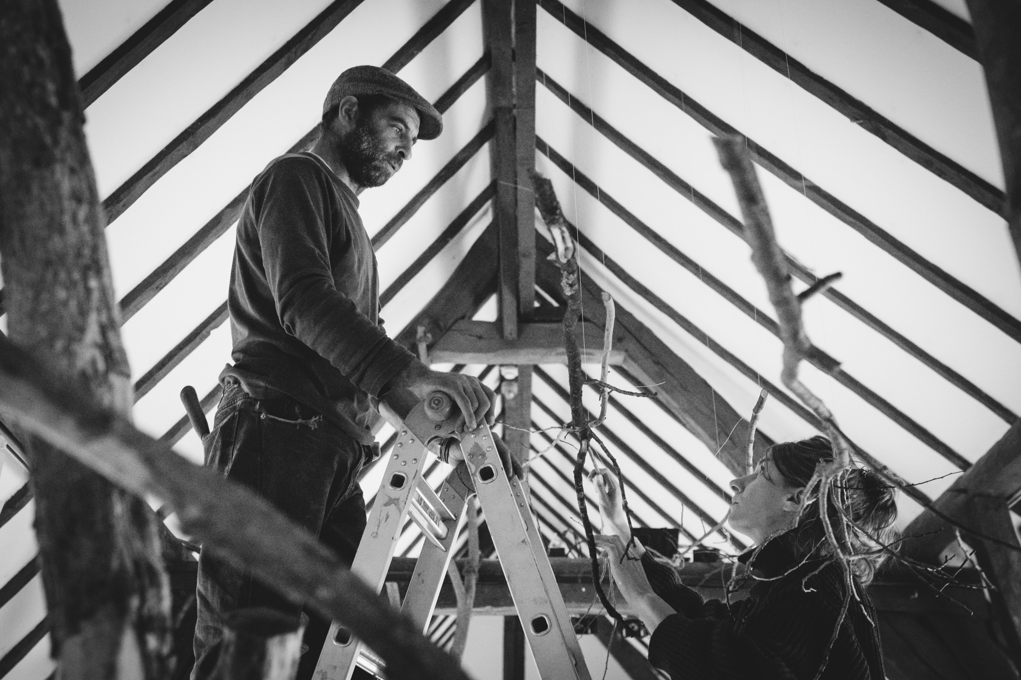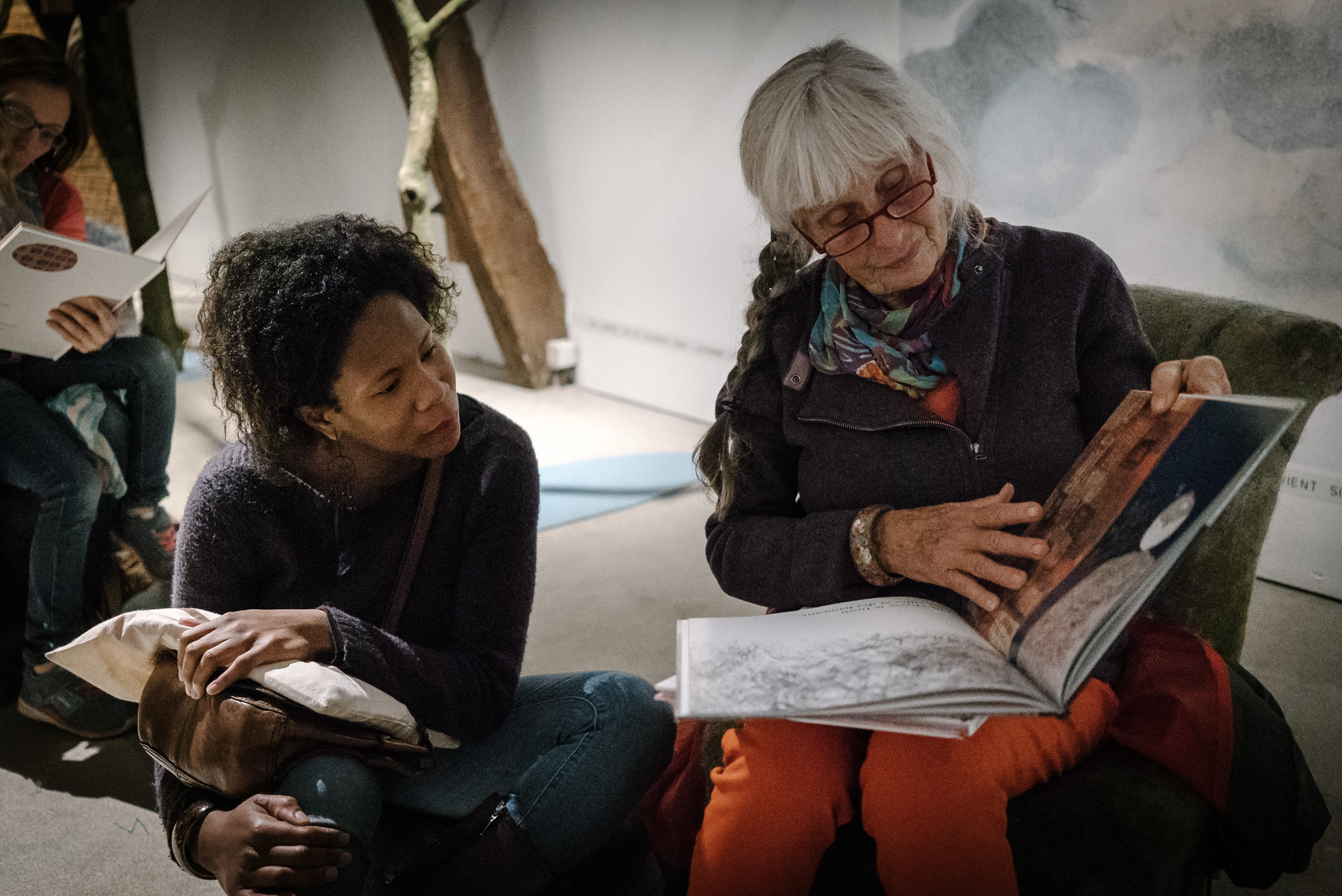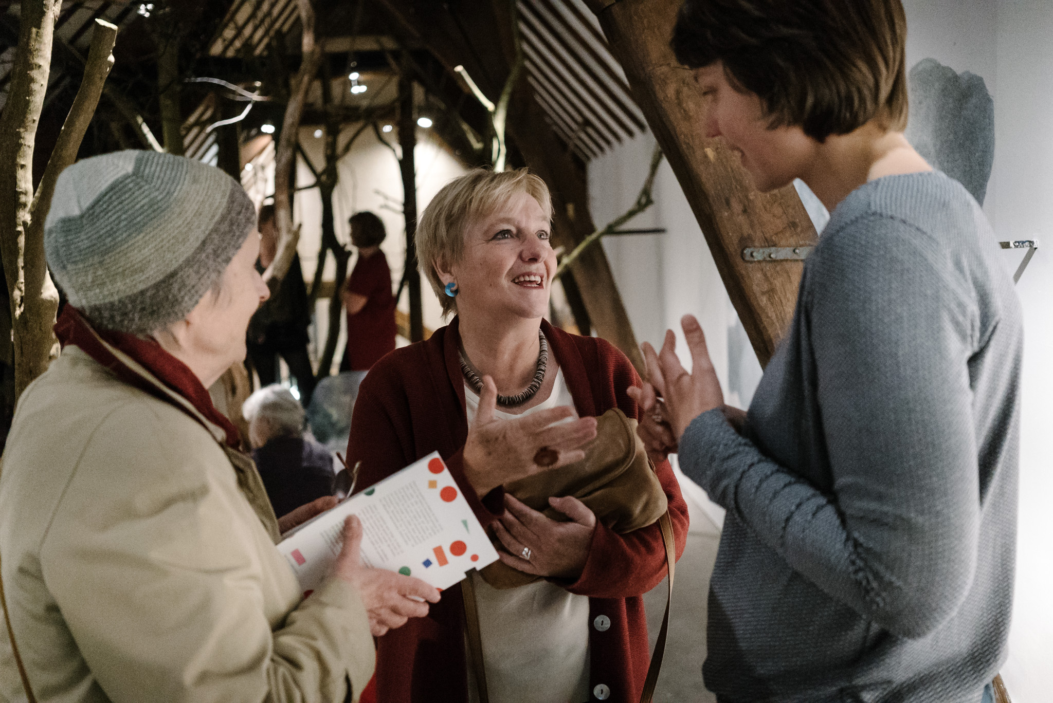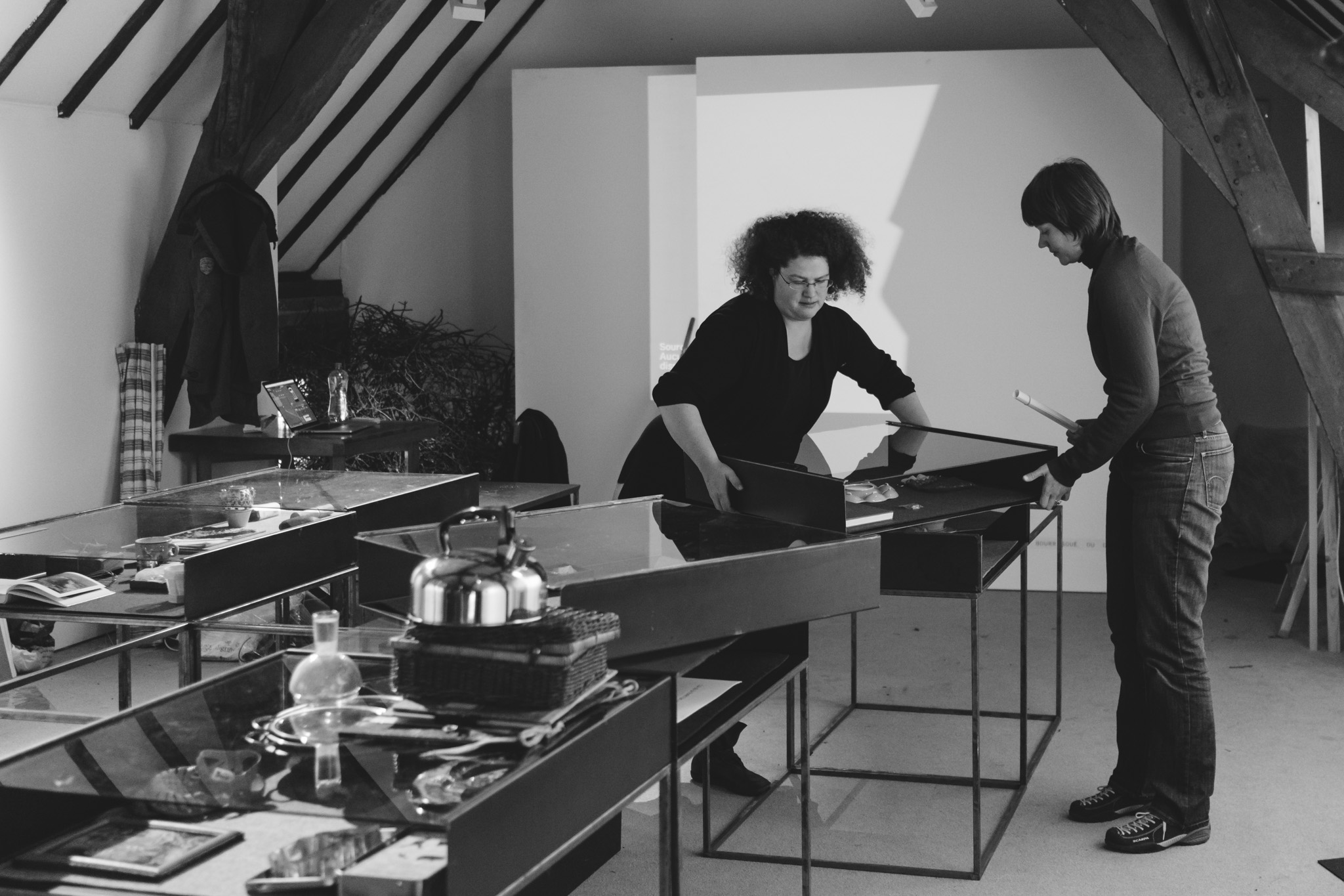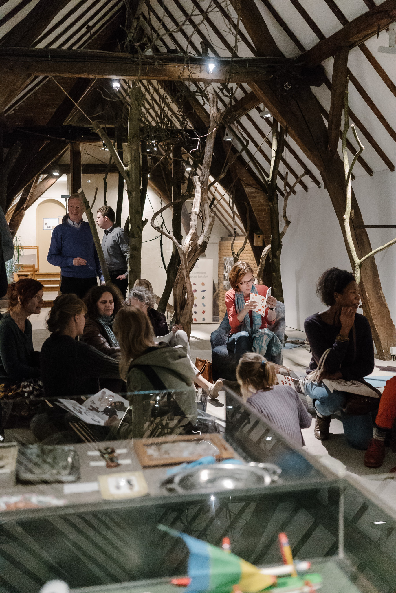 La forêt fera un bruit de mer, dans ses branches, sous les poutres dans la salle des expositions de la Vénerie. Anne Herbauts glane en lisière de ville des échos de marées, miettes, images et objets hétéroclites quotidiens ou lointains qu’elle rend précieux ou particuliers, traces inventées des marées sur Boitsfort. Ce seront de possibles histoires en branches, en brassées, à glaner à son tour par le visiteur.