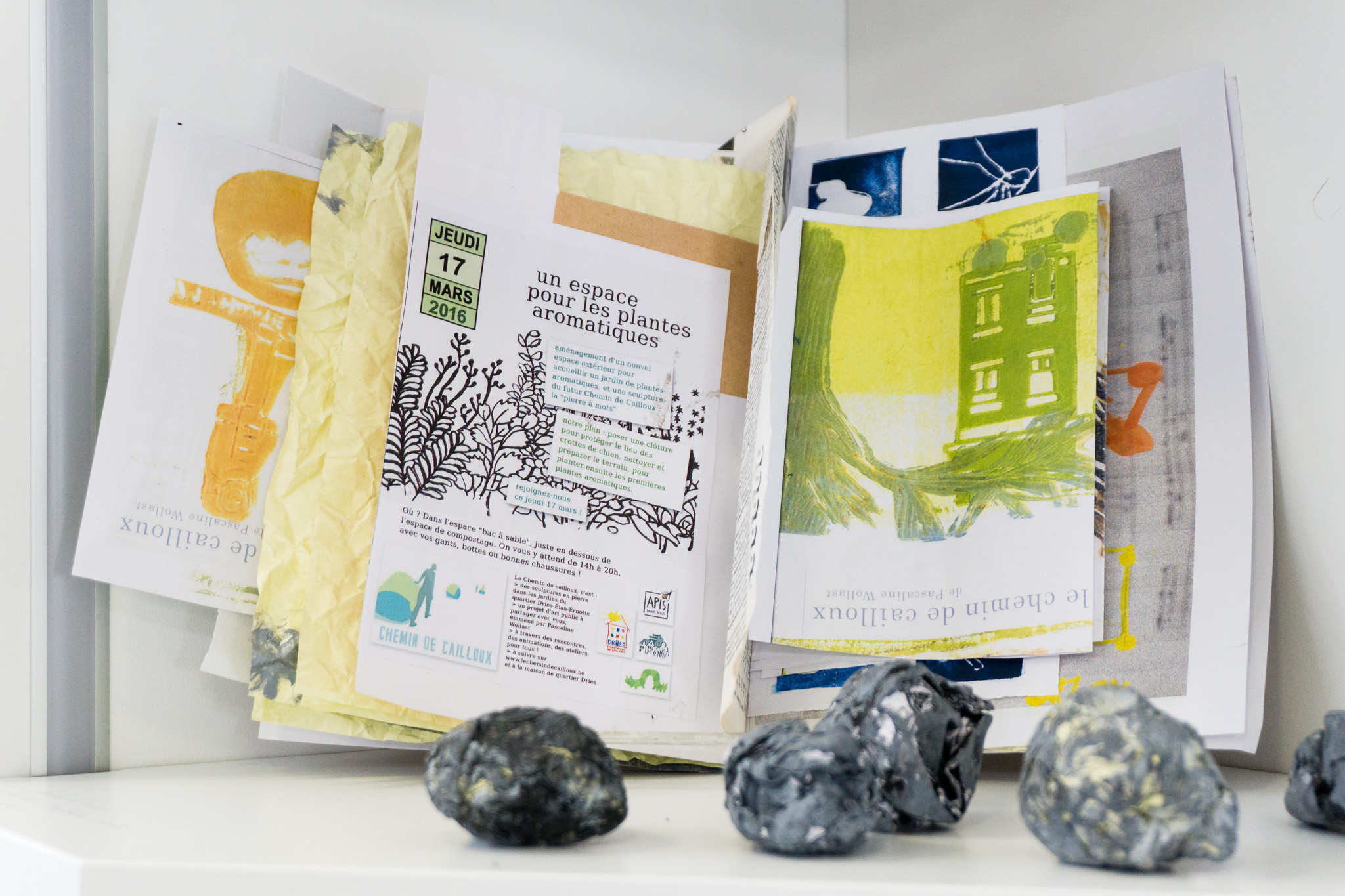 L’exposition présentera les créations réalisées en atelier par les enfants et adultes des logements sociaux du quartier, en collaboration avec la Maison de Quartier du Dries, le CLA et les biblio et ludothèques de Watermael-Boitsfort, l’espace de compostage, les jardins collectifs, l’atelier de reliure Voie 5, Apis Bruoc Sella…
