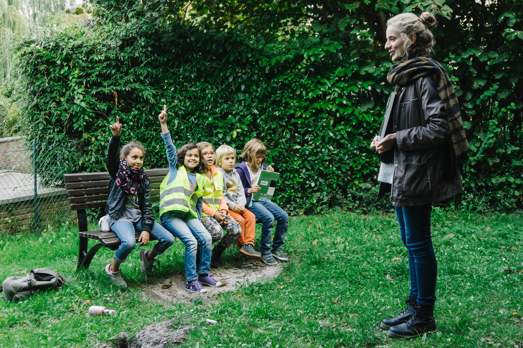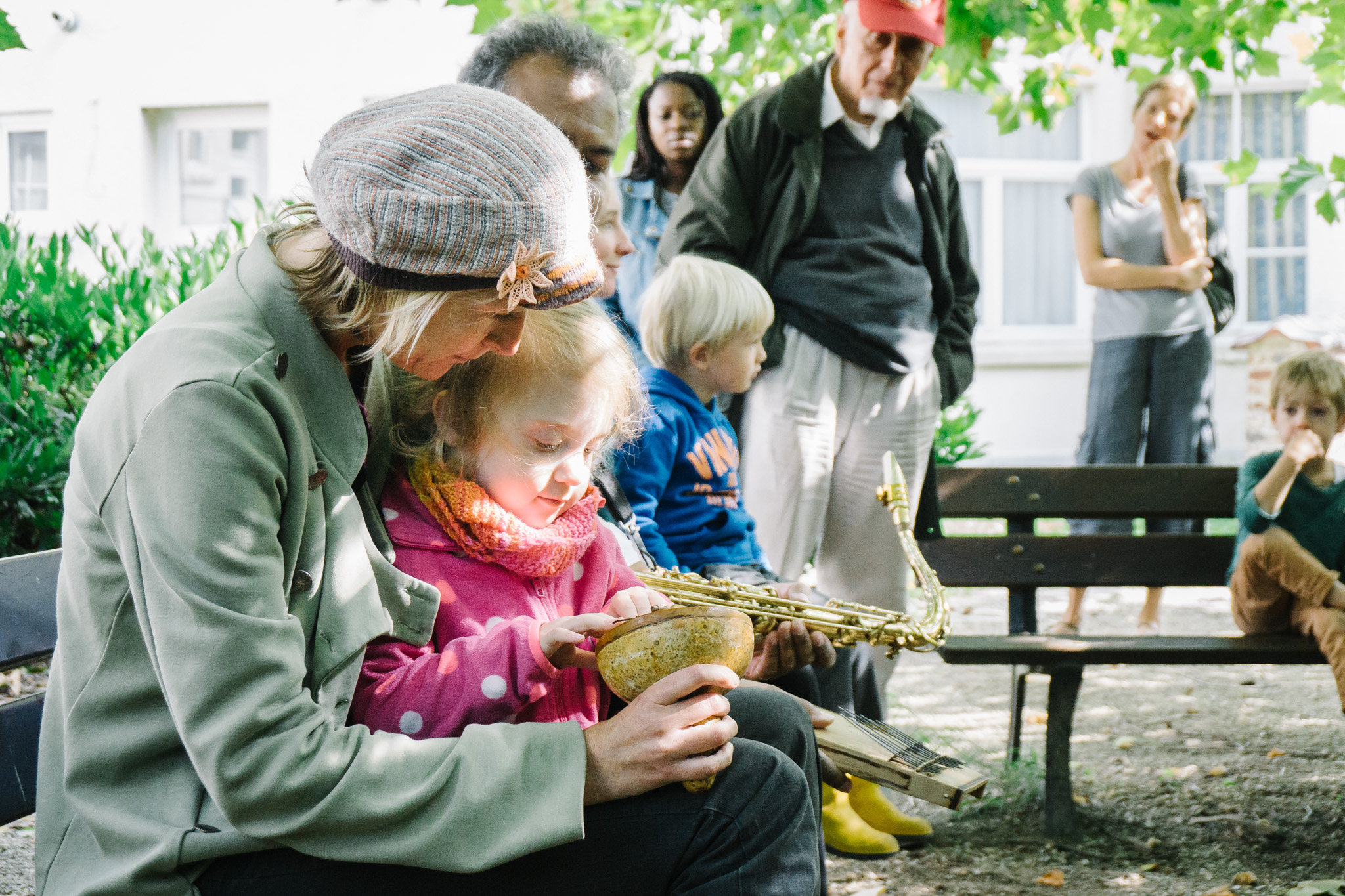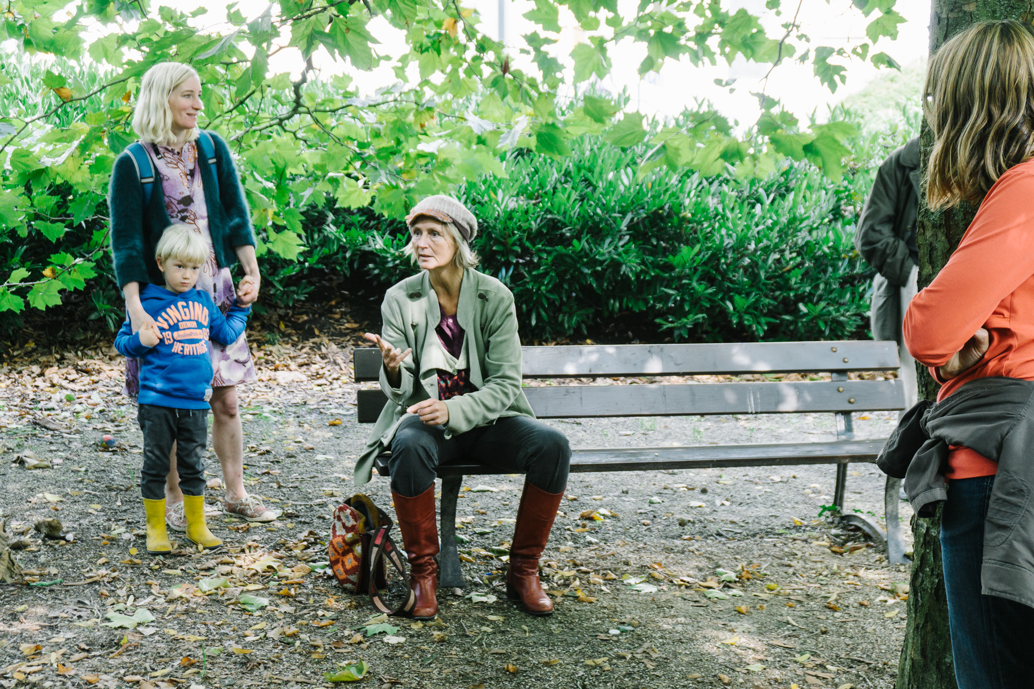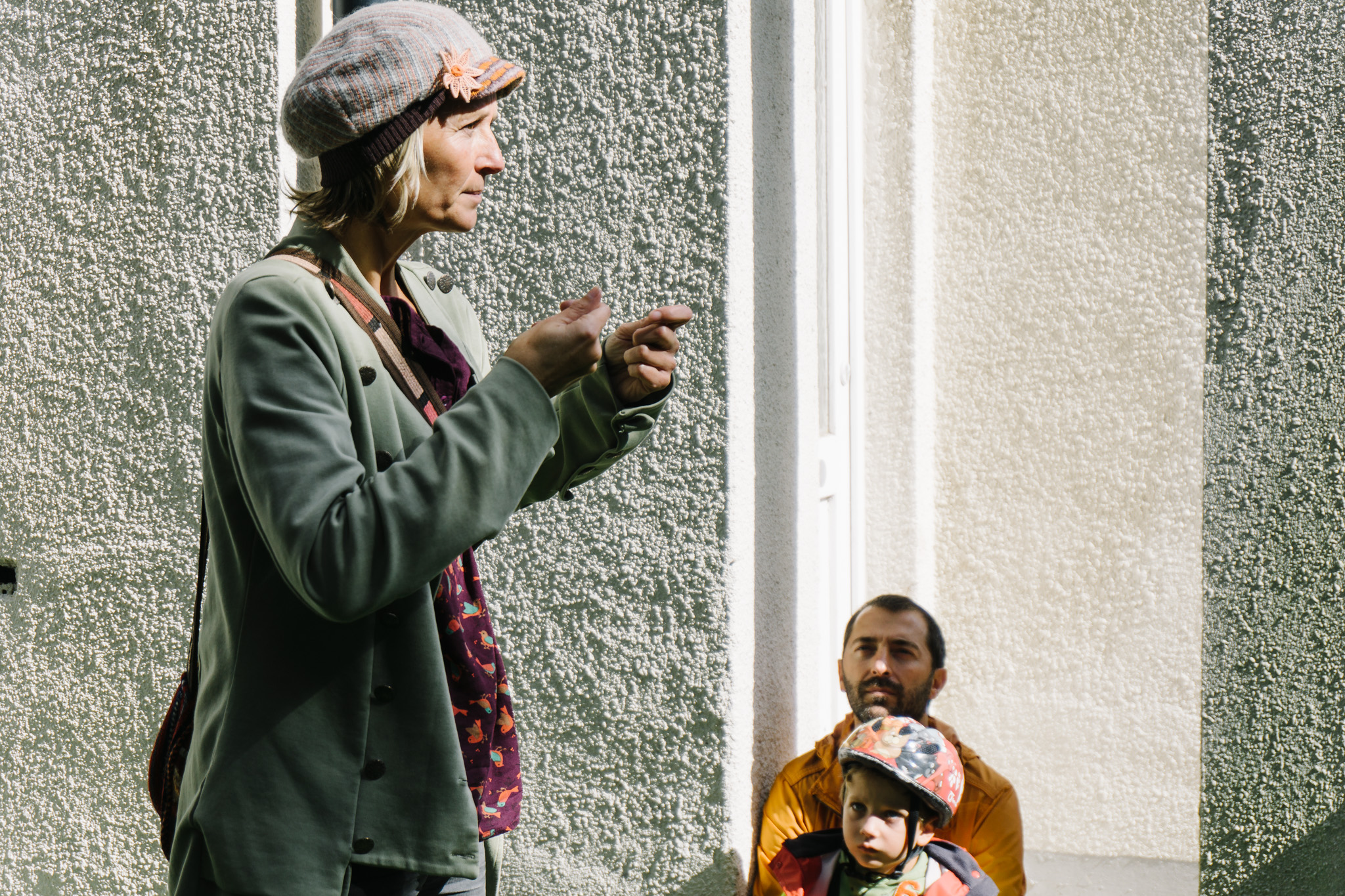 « Des histoires en marchant. Des histoires entre deux marches. Des histoires africaines racontées avec l’accent moitié bruxellois moitié wallon par une artiste belgo-flamande aux origines incertaines, accompagnée d’un musicien français né à Madagascar. On se promène. On marche avec les mots qu’on vient d’entendre. On se pose avec des questions. »