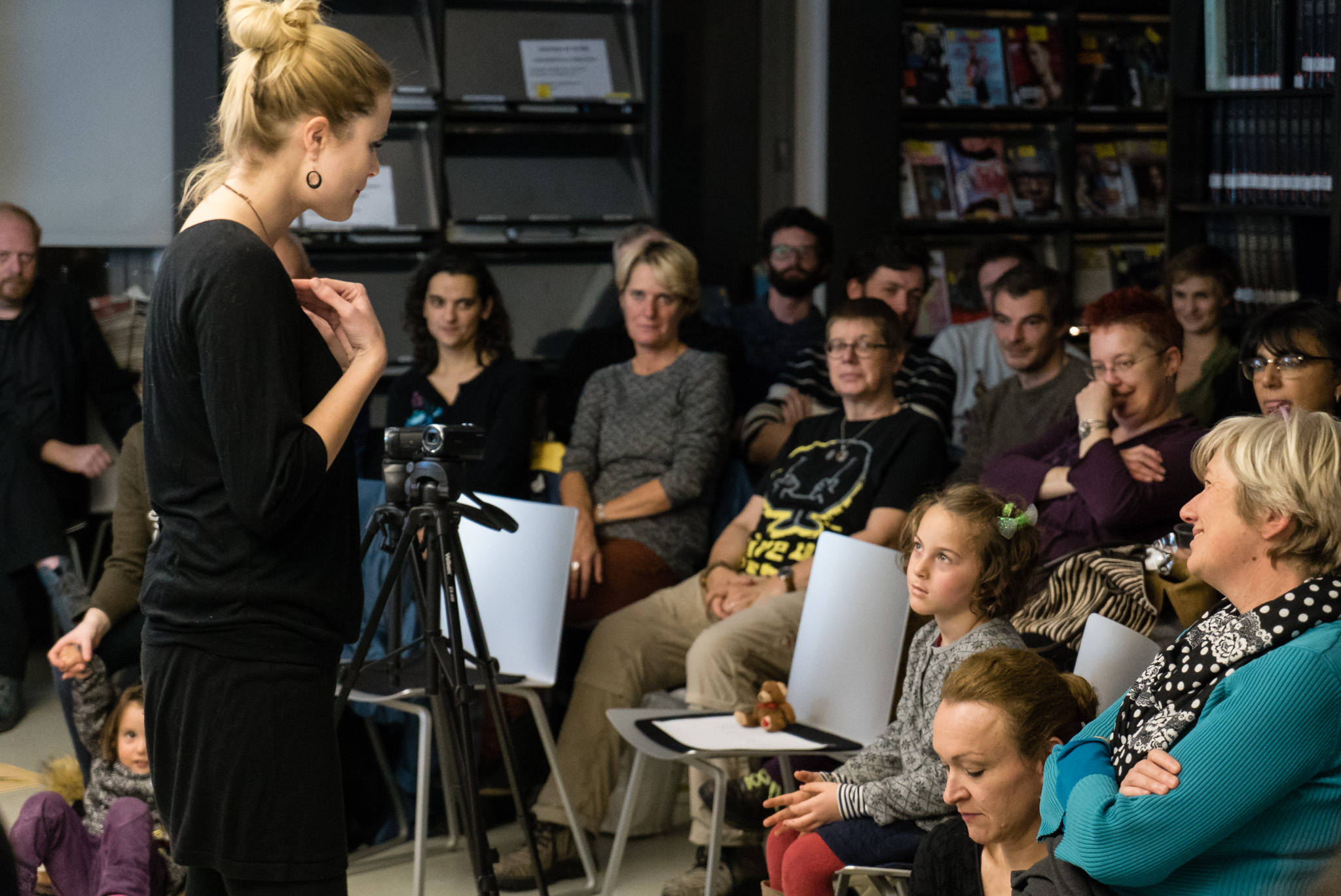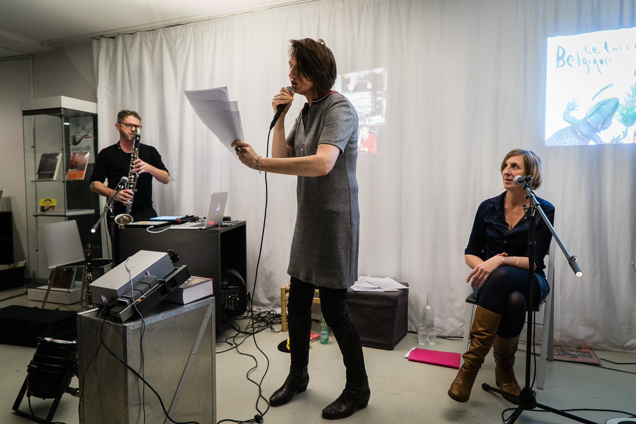 À 20h, apogée : le spectacle « Le tour de Belgique » avec Els Moors, Laurence Vielle et Vincent Granger à la bibliothèque de l’Espace Paul Delvaux.