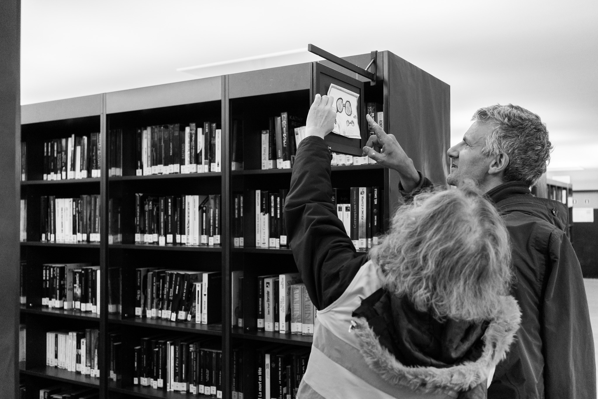 Au travers d’une trentaine de dessins, simples, légers et d’humeur vagabonde, Cloé Marthe esquisse sa vision très amicale de la bibliothèque.
