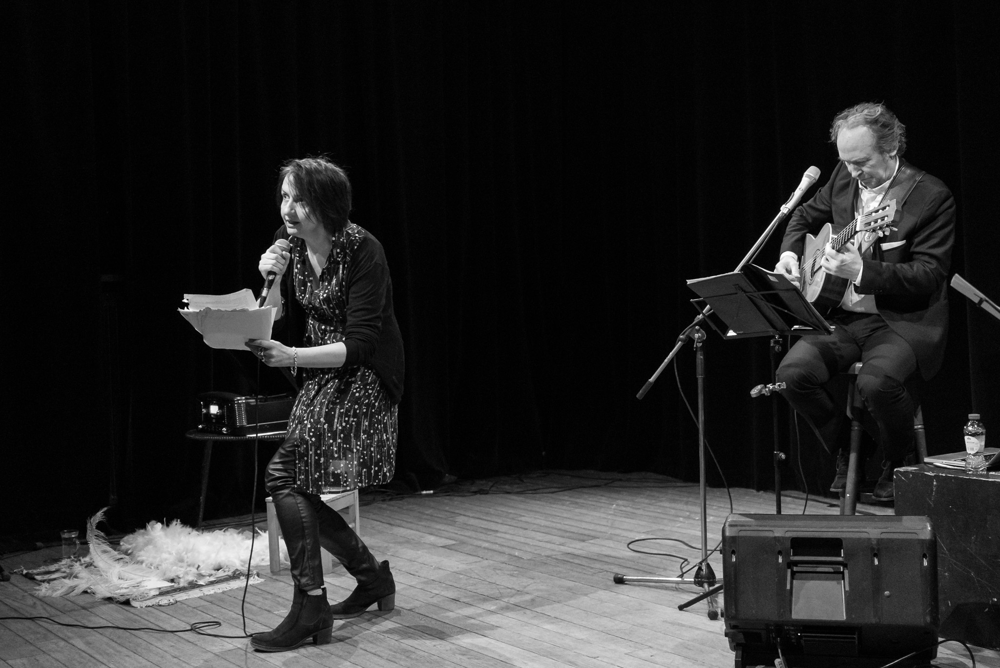 Les cygnes sauvages et Les habits neufs de l’empereur, des contes réenchantés par Laurence Vielle (poétesse nationale belge en 2016) et mis en musique avec Bertrand Binet et Vincent Granger.