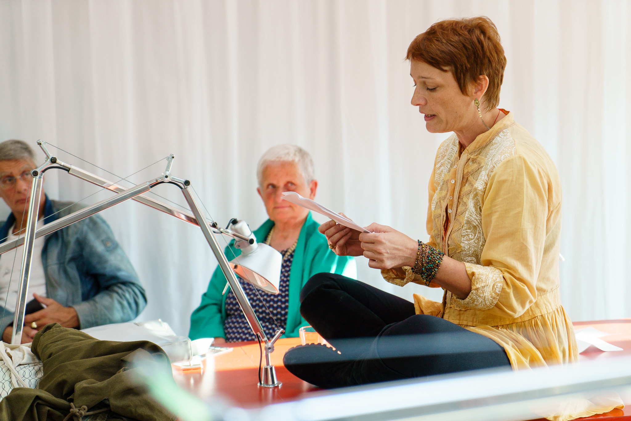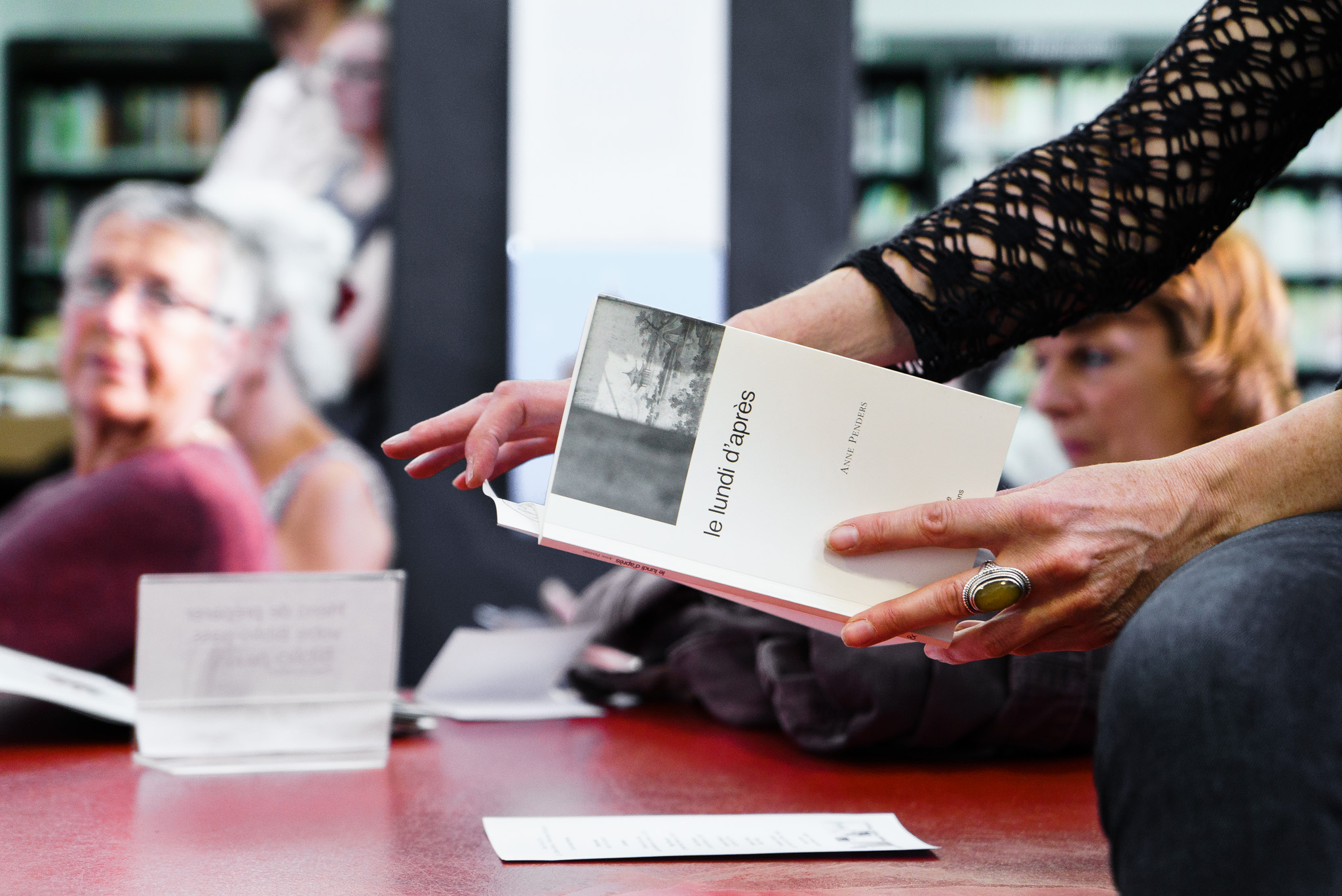 Lectures — Christine Van Acker (La concordance du temps, 2012), Serge Meurant (L’orient des chemins, 2012), Anne Penders (Le lundi d’après, 2007), Veronika Mabardi (Les cerfs, 2014), Bernard Villers (VIdE, inédit), Frédérique Dolphijn (Là où l’eau touche l’âme, inédit), Anne De Roo (Aérer la maison, 2008).