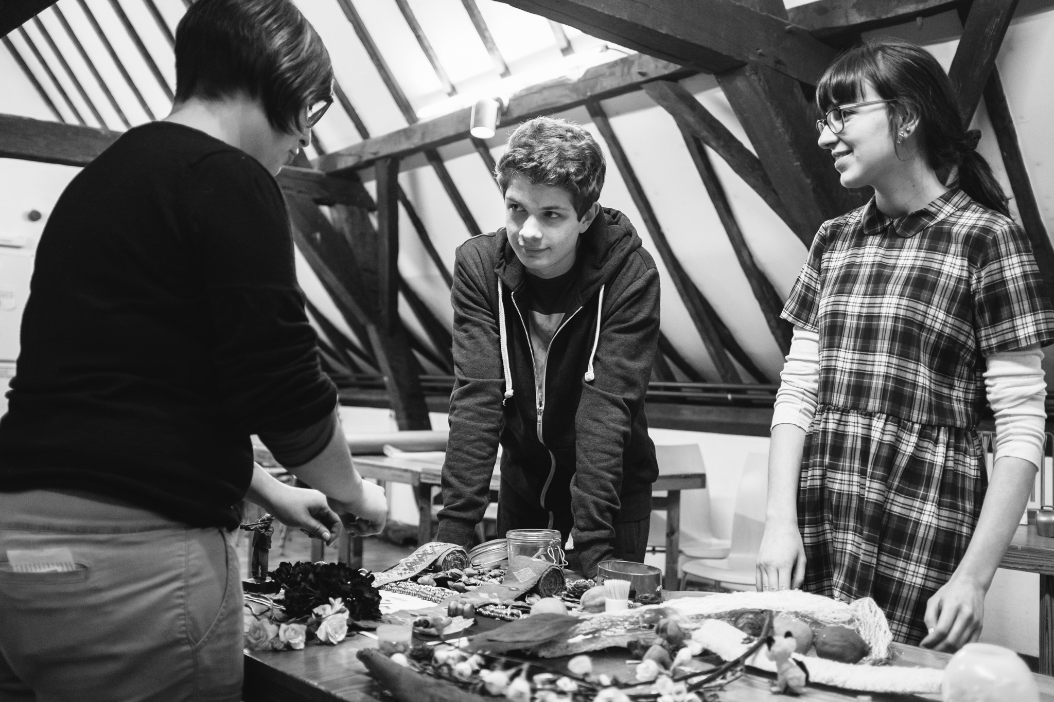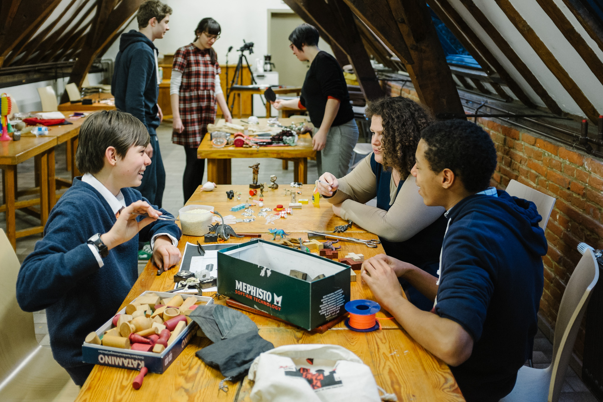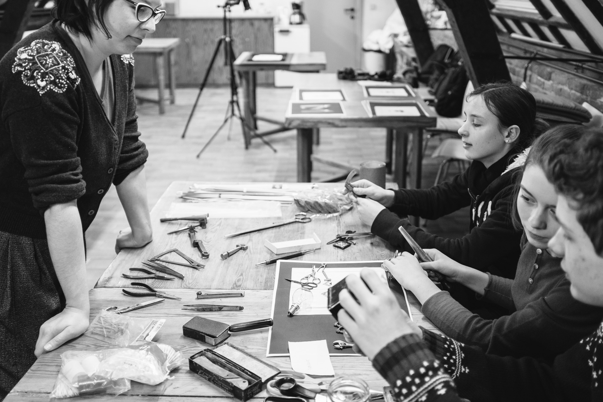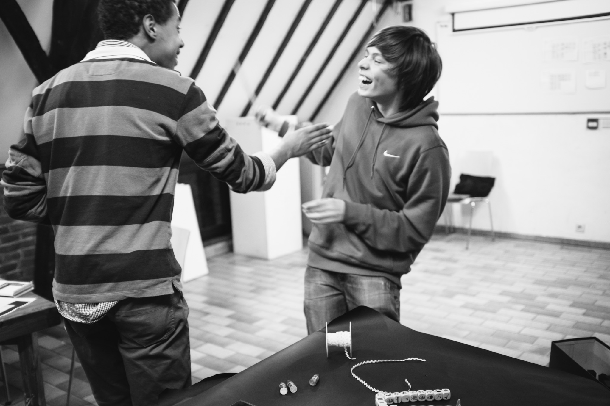 Tohu-bohu, hurluberlu, charivari, zigzag, ambiancer, s’enlivrer, à tire-larigot, ouf, timbré et faribole… Quatre ateliers pour jouer avec dix mots de la langue française, écrire, filmer et enregistrer, animer les pages du livre d’artiste « Masques » de Louise-Marie Cumont.