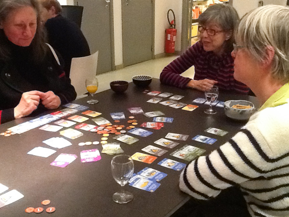 Ainsi, de mois en mois, les participant(e)s ont fait bonne chère de Carcassonne, Augustus, Cacao, Qwirkle, Safranito, Marrakech, Dixit, Couadsous, Concept, Le voleur de Baghdad, Célestia, Les aventuriers du rail, 7 Wonders, Saboteur, Zack & Pack.