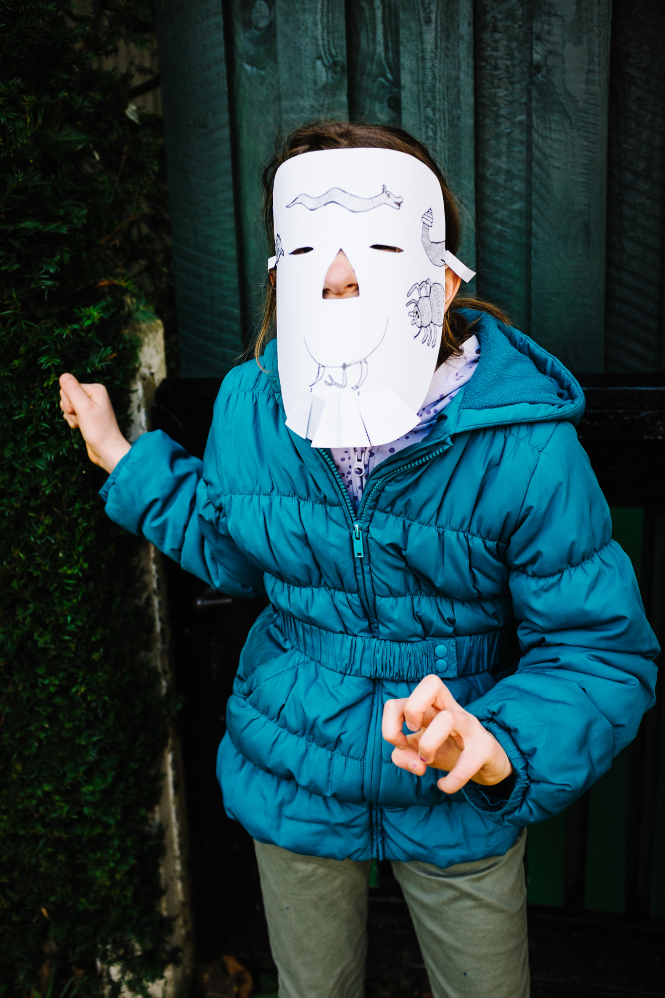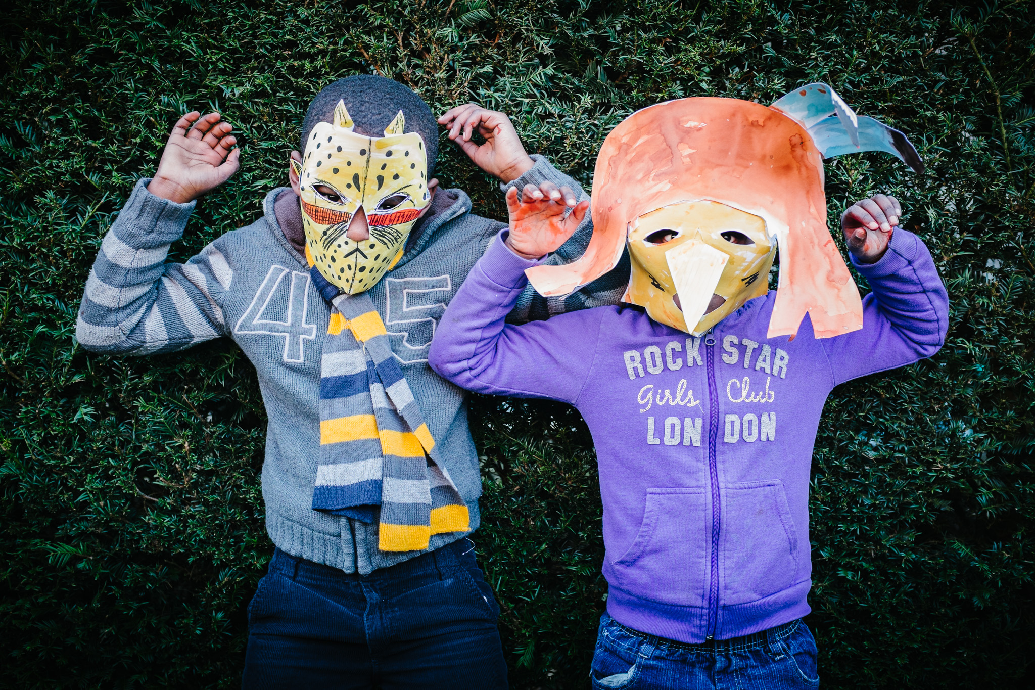 Portraits des enfants portant un masque qu’ils ont créé pendant la semaine :