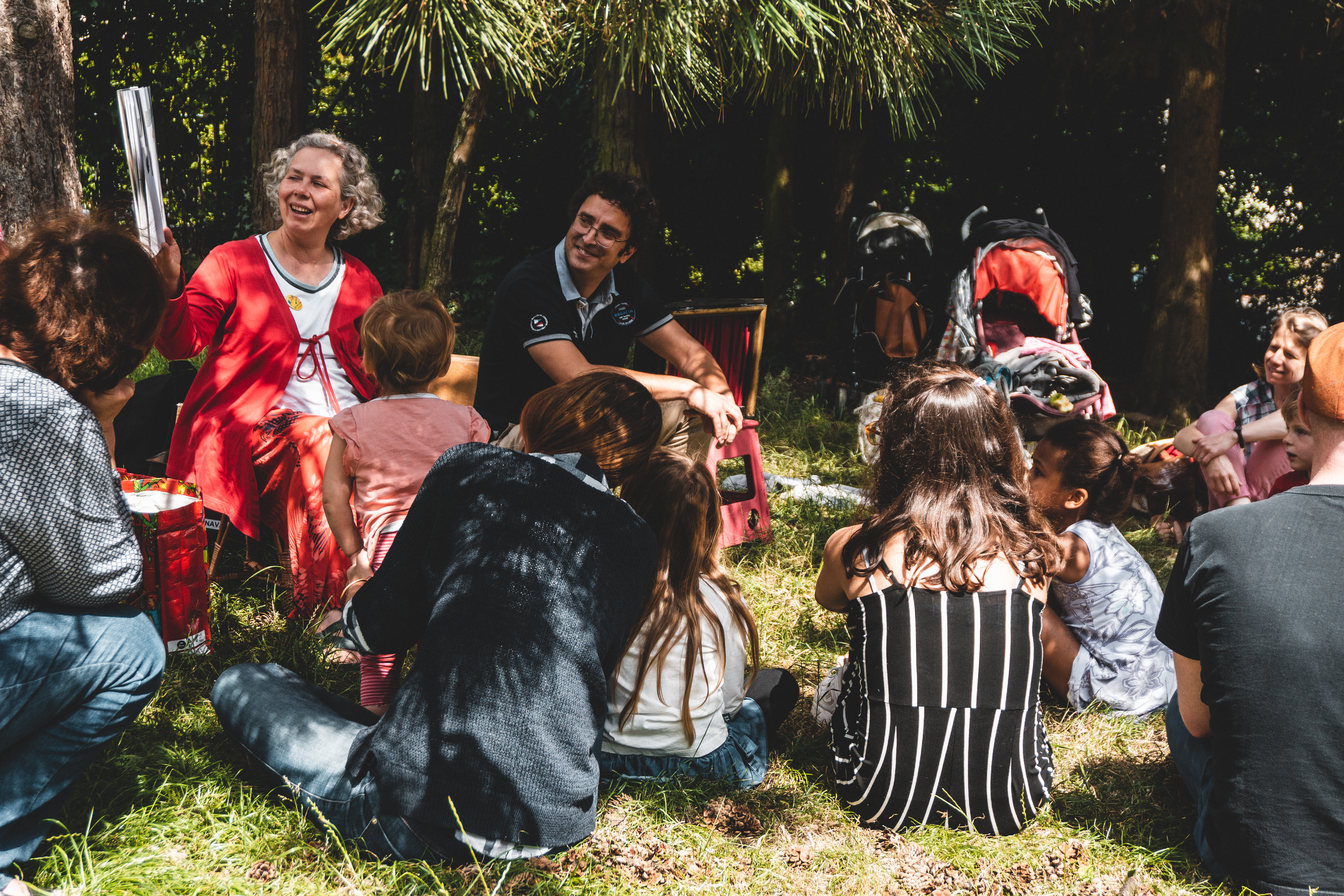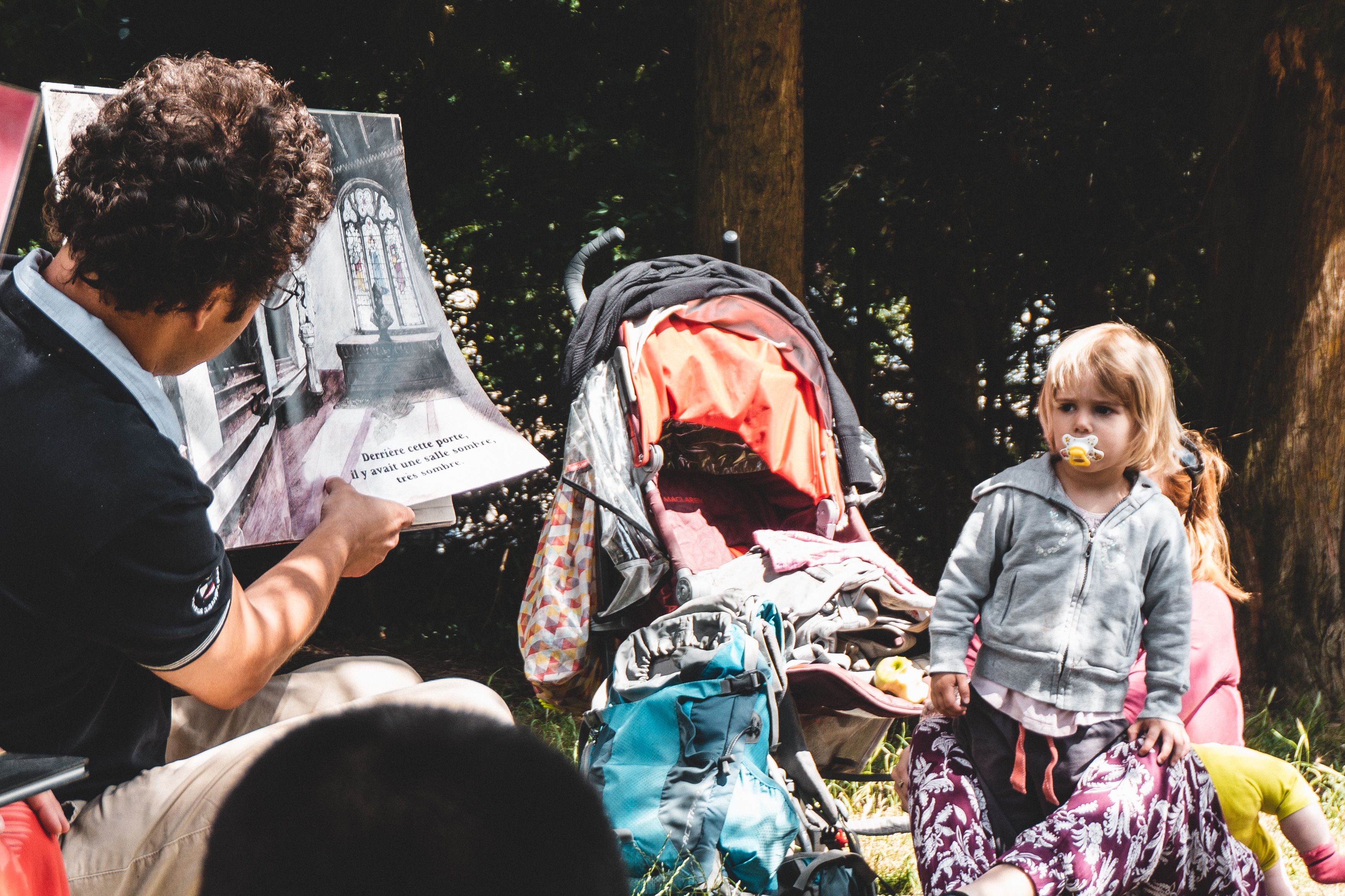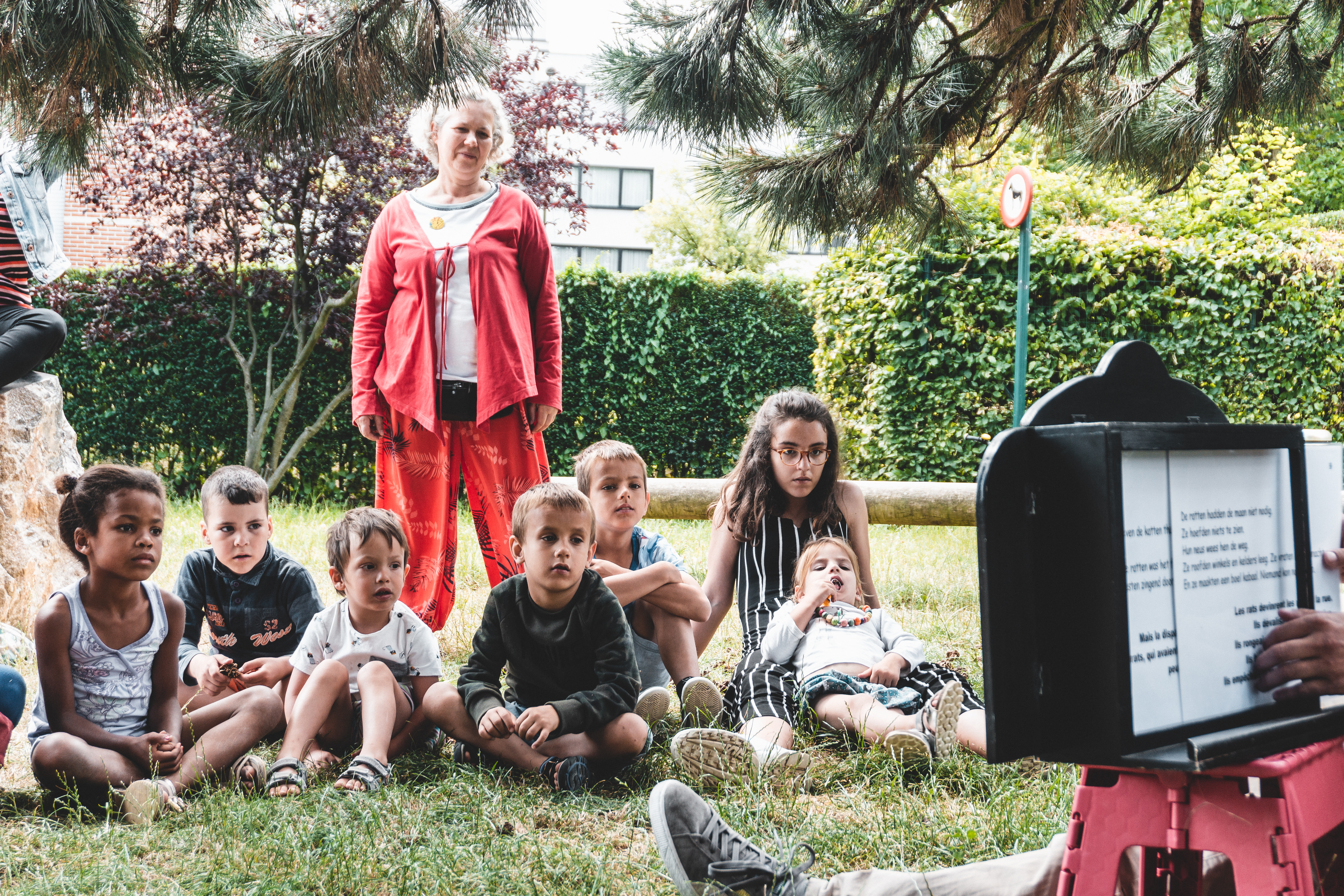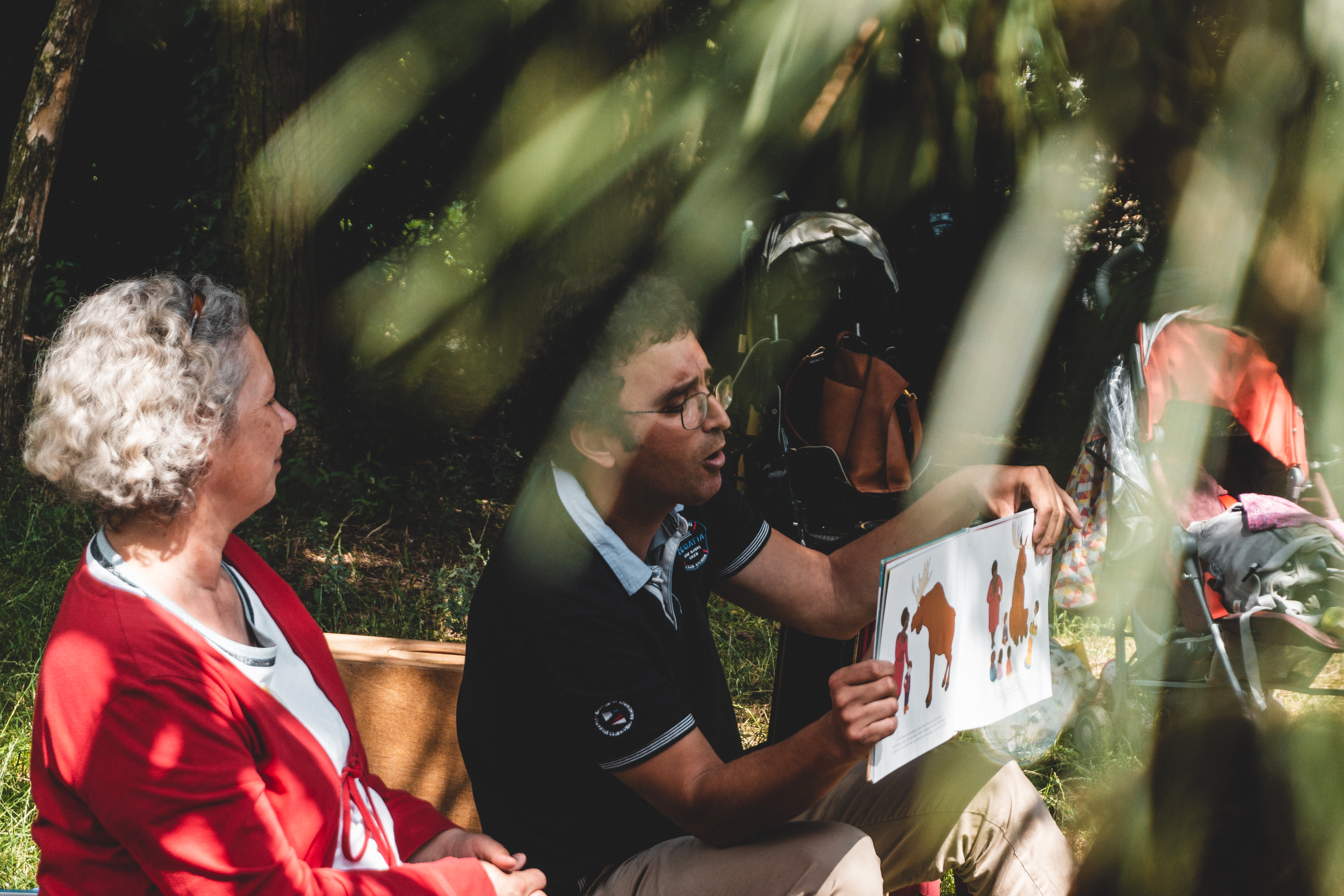 Cet été, les livres sortent des bibliothèques ! Un animateur et un bibliothécaire racontent des histoires chaque mardi à la plaine de jeux du Dries.