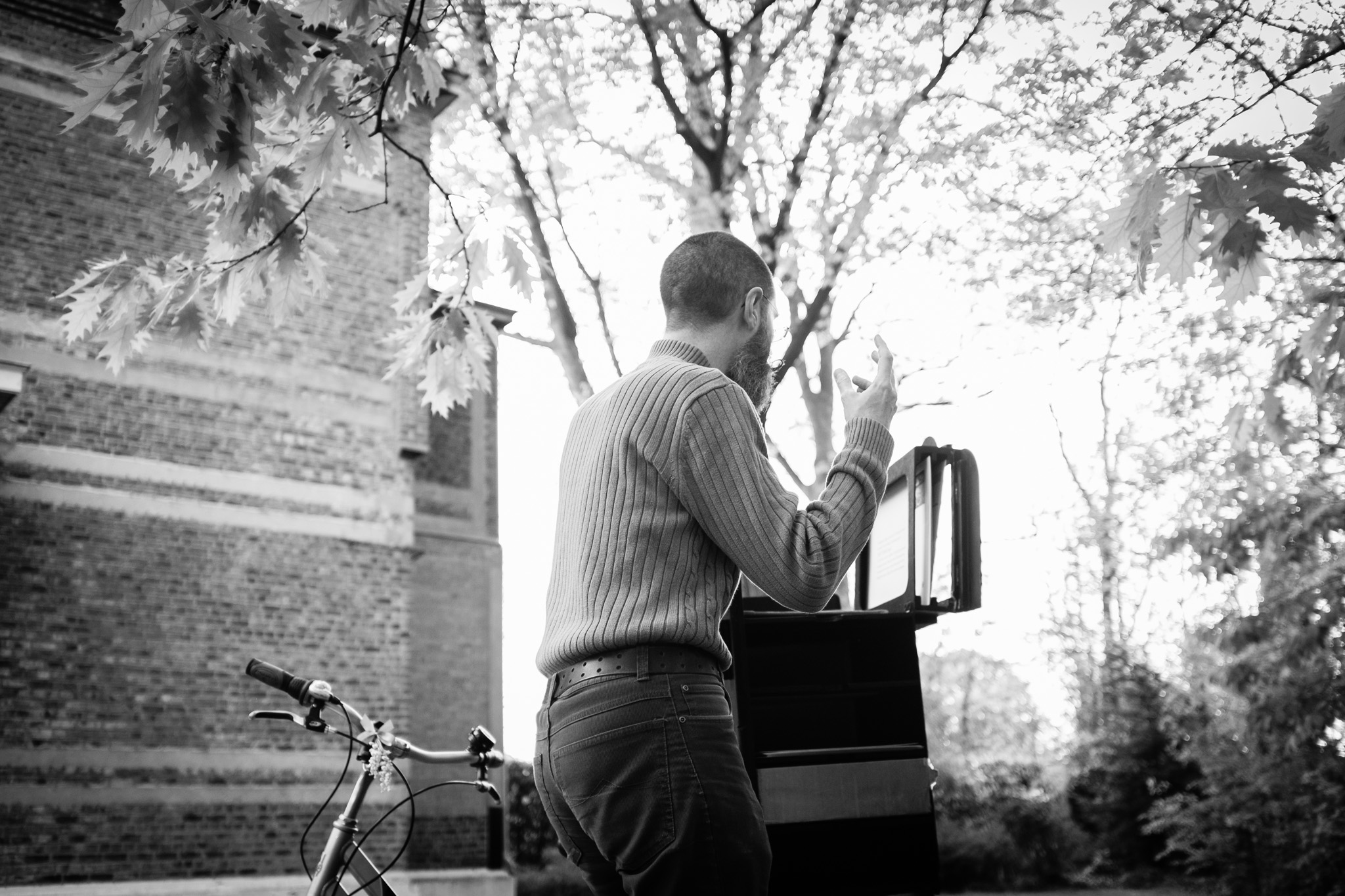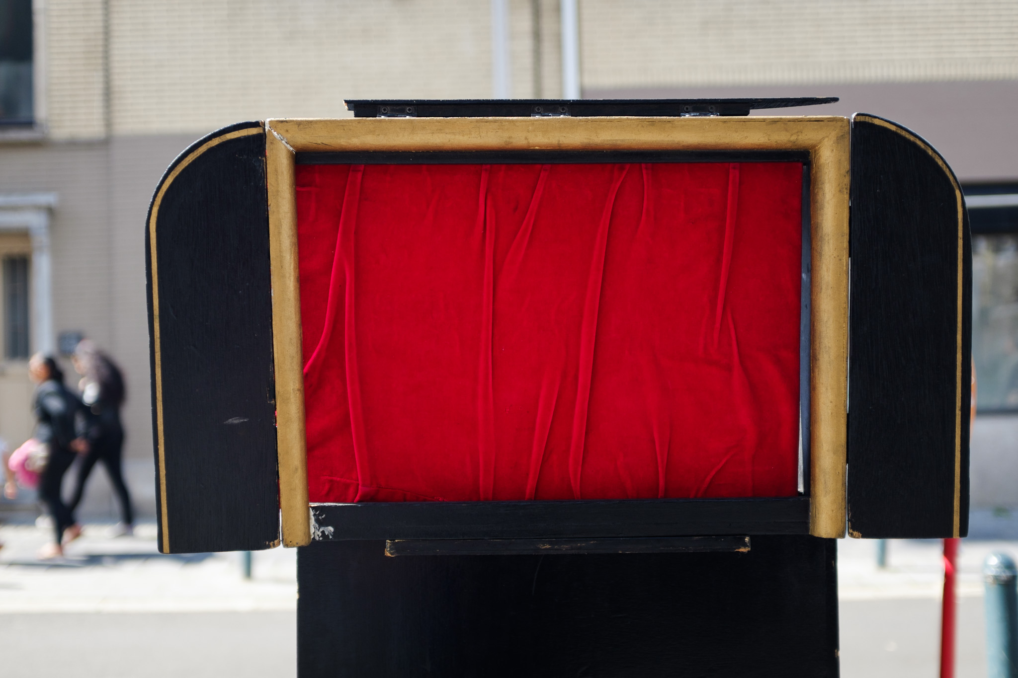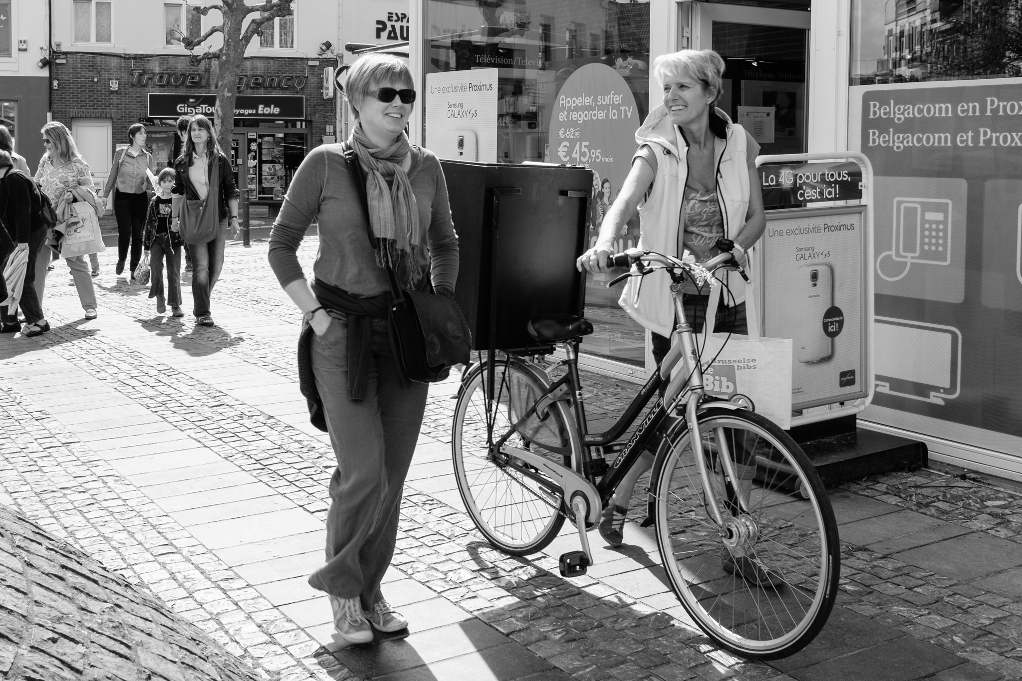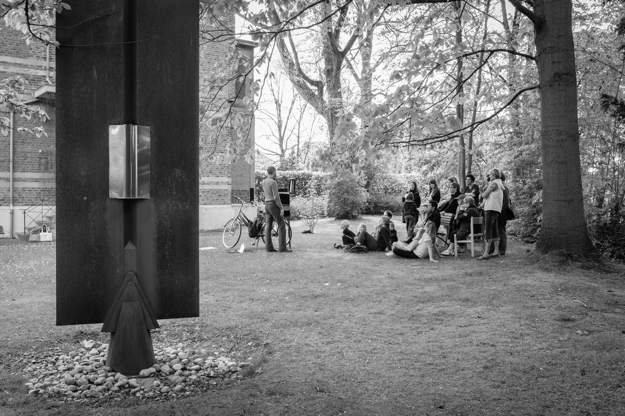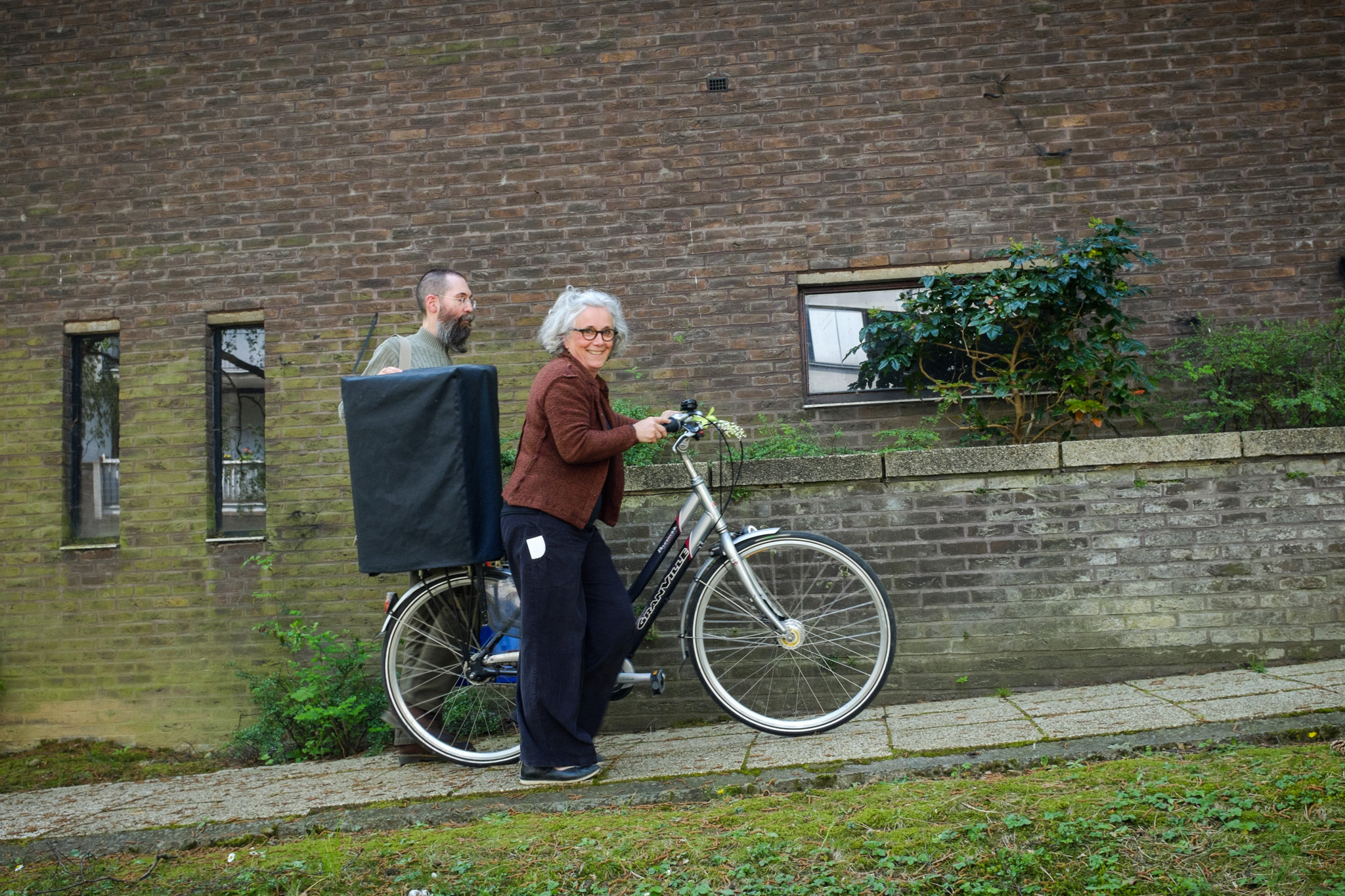 D’une bibliothèque à l’autre, les bibliothécaires racontent des histoires à l’aide d’un petit théâtre de papier accroché sur un vélo… une fois en français, une fois en néerlandais !